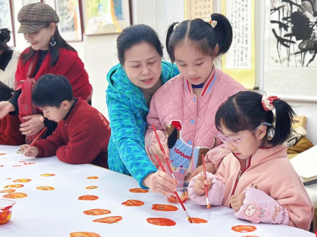 “奶奶,您画的柿子真圆,教教我好不好?”“来,握稳笔,慢慢描,咱们把这‘柿柿如意’画得更红更亮!”2月3日上午,区老干部活动中心墨香袅袅、暖意升腾,“笔墨传吉庆 银发绘安康”长卷书画创作活动在此温情上演。退休老同志们挥毫泼墨寄情怀,“银辉护苗”寒假爱心托管班的孩子们童心加盟,一老一小以笔为媒,共绘“柿柿如意”的吉祥画卷。