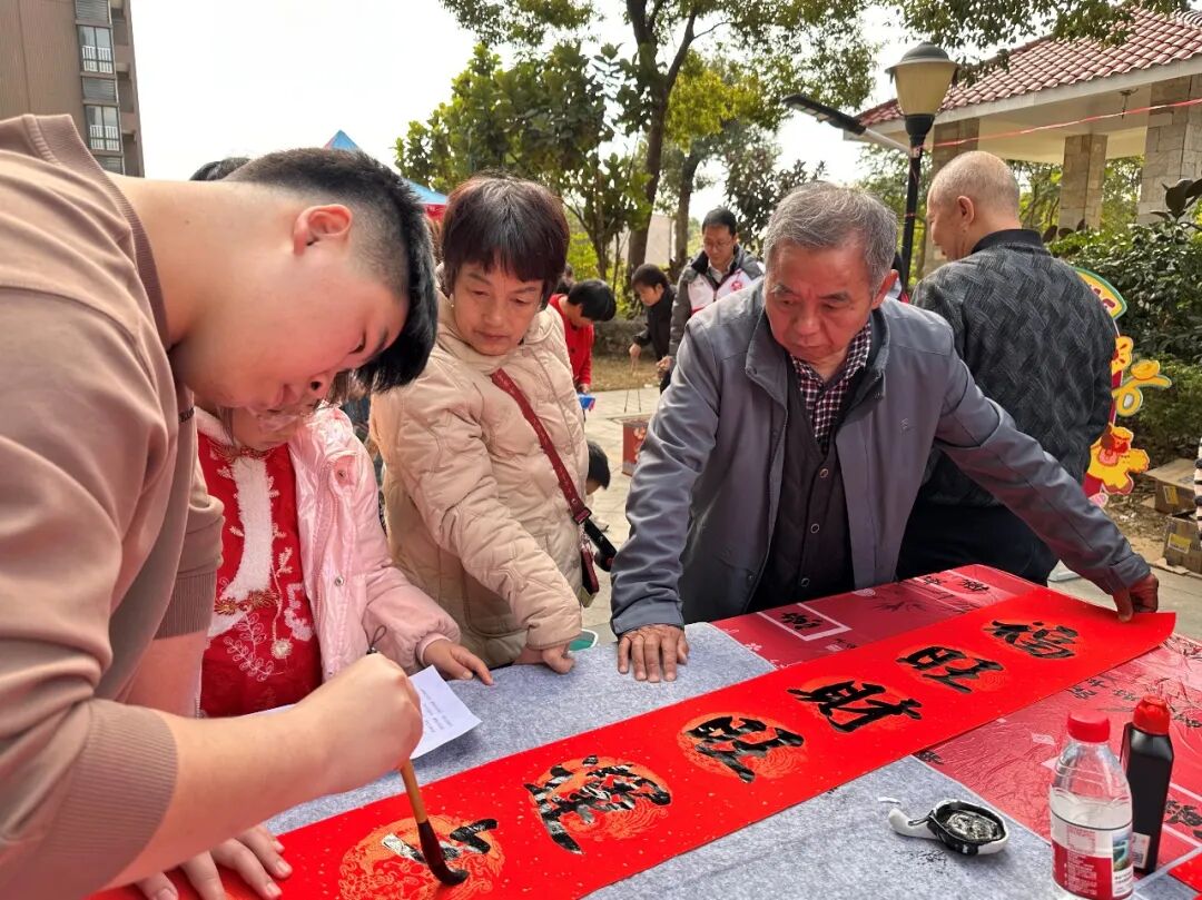 活动现场,红纸铺展,墨香萦绕。一笔一画间,遒劲有力的字迹跃然纸上,既有“春回大地千山秀,福降人间万户欢”的喜庆,也有“龙马精神开新局,阖家幸福启新程”的期许,引得居民们纷纷驻足欣赏。