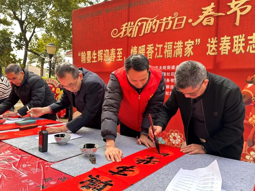 “手写的春联才有年味儿,这墨香里藏着的都是实实在在的祝福,太贴心了!”手捧刚领到的春联,居民脸上洋溢着幸福的笑容,言语间满是喜悦。