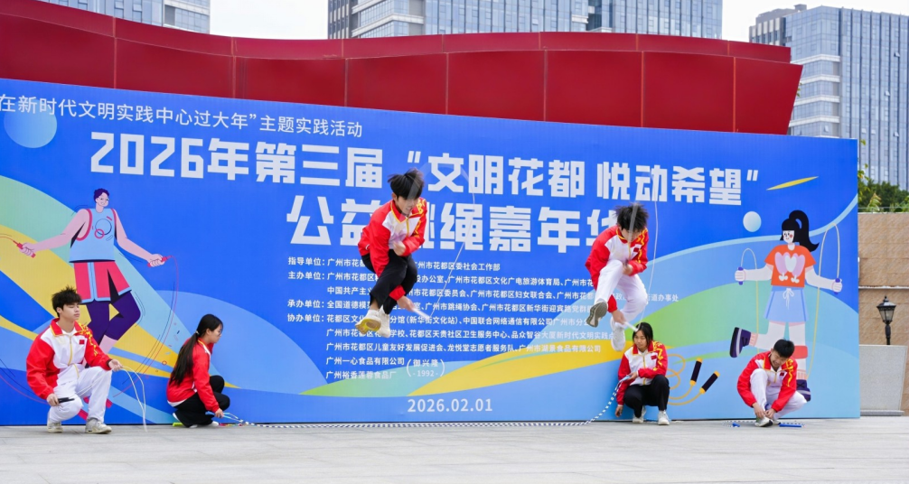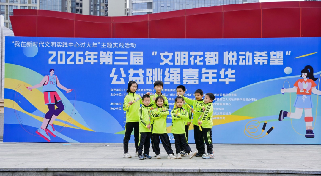 2025年,在花都区宣传部和花都区文明办的大力支持下,全国道德模范赖宣治工作室联合广州市跳绳协会开展14期共140多节跳绳公益课堂,为孩子们免费提供学习舞台。
