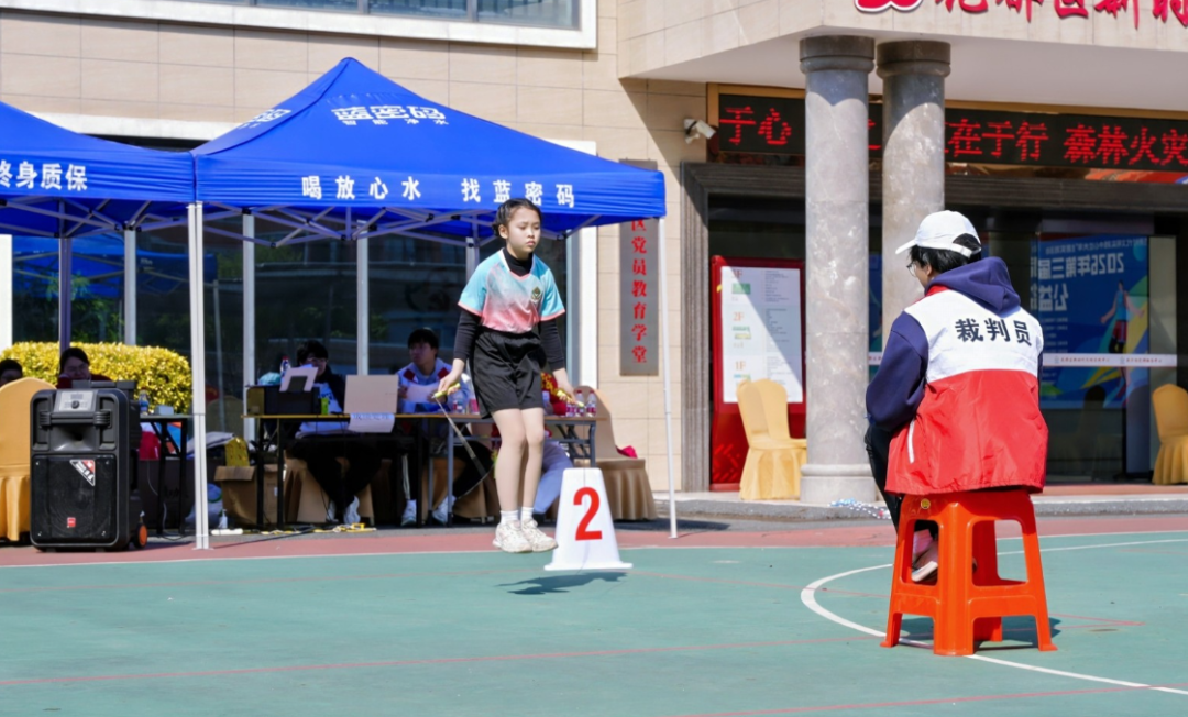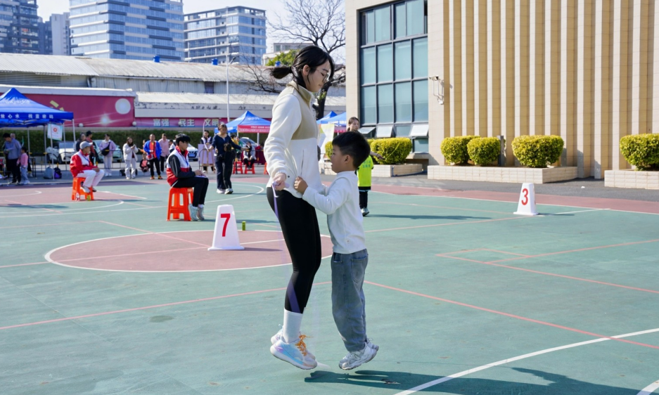 本次嘉年华设置了30秒单摇跳、30秒交叉跳、30秒双摇跳和30秒个人花样项目、4*30秒交互绳接力和亲子1分钟一带一单摇跳多个项目,参赛者们各展所长,上演了一场场速度与技巧的较量。参赛者们跳绳如“旋风”飞转,而4×30秒交互绳接力更是以团队协作的形式,让四人配合穿越旋转绳影的精彩画面成为集体运动的生动缩影。压轴的亲子1分钟一带一单摇的温馨赛道,让父母与孩子携手跳跃,在默契配合中拉近家庭关系,更以零门槛的参与形式带动了全年龄段家庭的加入。