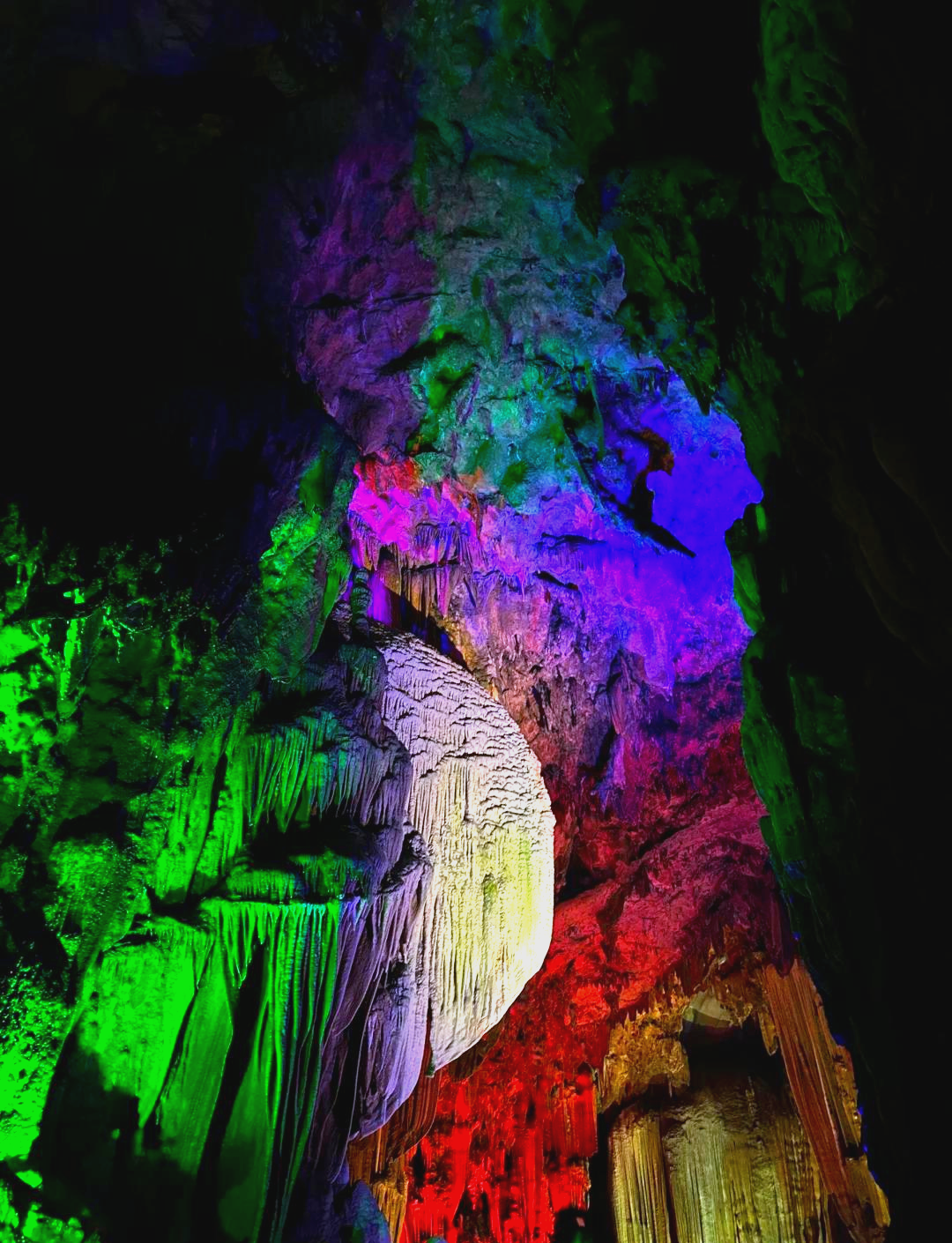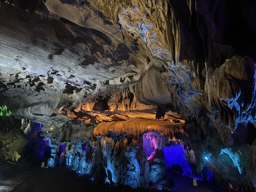 色彩斑斓的钟乳石在灯光流转间折射出奇幻光影,让人分不清现实与梦境。行走在洞内,18-20℃的恒温恰好裹住全身,瞬间隔绝了外界的寒意,连呼吸都变得柔软起来。