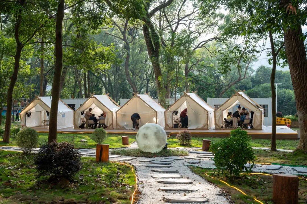 踏入园区,樟香便盈满衣袖,“森藏BLUE青年营地”的树屋咖啡飘来醇香,露营帐篷散落林间,像是大自然搭建的松弛剧场。