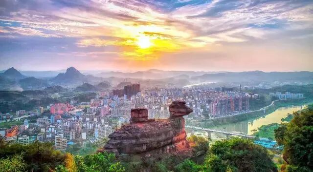 拾级而上,身旁的奇峰异石轮廓分明,越往高处,视野越开阔。待登顶远眺,乐昌大地的壮美画卷在眼前铺展:山峦层叠如墨染,江河如练蜿蜒而去,历史的厚重与地质的奇观在此交融,每一块岩石都在低声诉说千万年的故事。