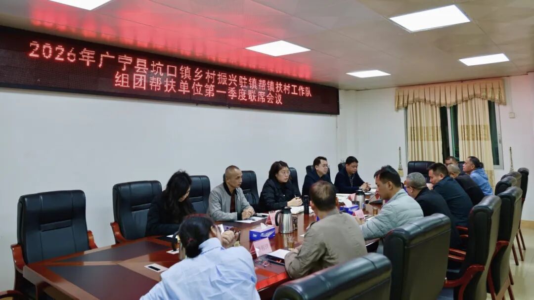 当天,还组织召开了2026年广宁县坑口镇乡村振兴驻镇帮镇扶村工作队组团帮扶单位第一季度联席会议。各组团单位代表、坑口镇主要负责同志及工作队成员齐聚一堂,共同总结前期工作,谋划新一年帮扶重点。会议强调,要持续聚焦群众“急难愁盼”,整合资源、形成合力,扎实推进各项帮扶措施落地见效,助力乡村振兴取得新进展。