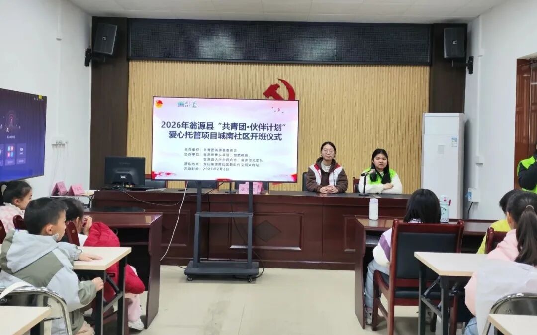 2月2日,团翁源县委联合多部门举办的 “共青团・伙伴计划 翁青情暖・守护童心” 寒假爱心托管项目,在翁源县龙仙镇幸福、城北、城南、城东四社区同步开班。