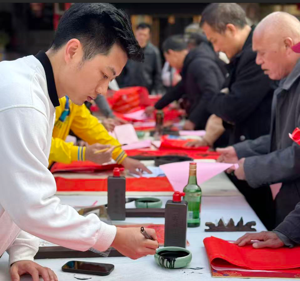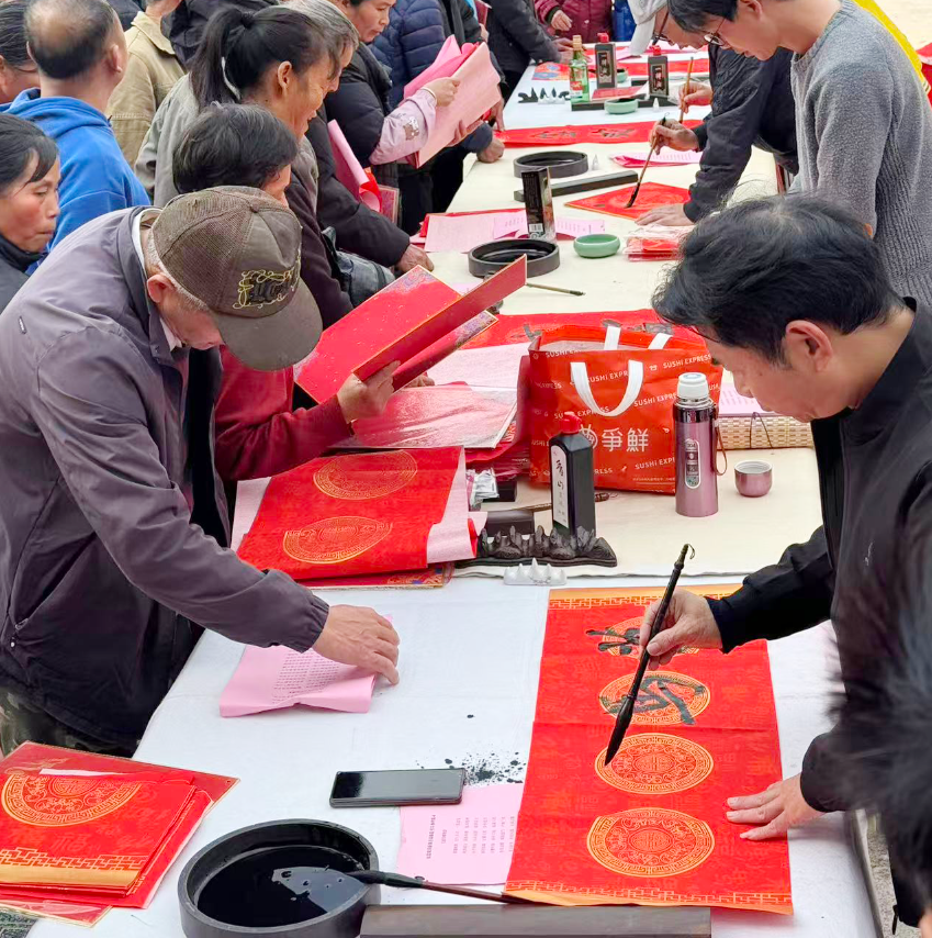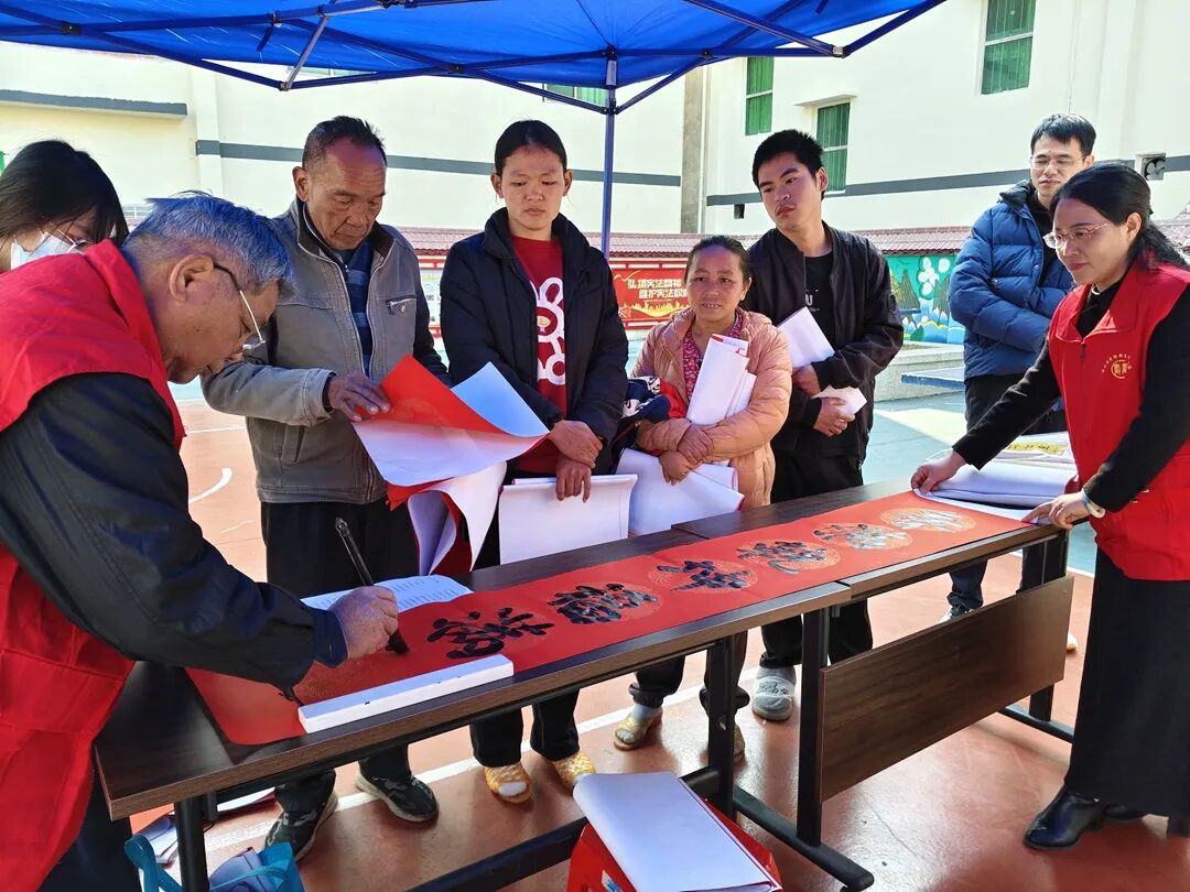 活动组织市、县两级10余名书法文艺志愿者现场挥毫,为村民书写并赠送春联,将新春的祝福与文明的清风送入千家万户,为即将到来的马年增添了浓厚的文化气息与祥和暖意。