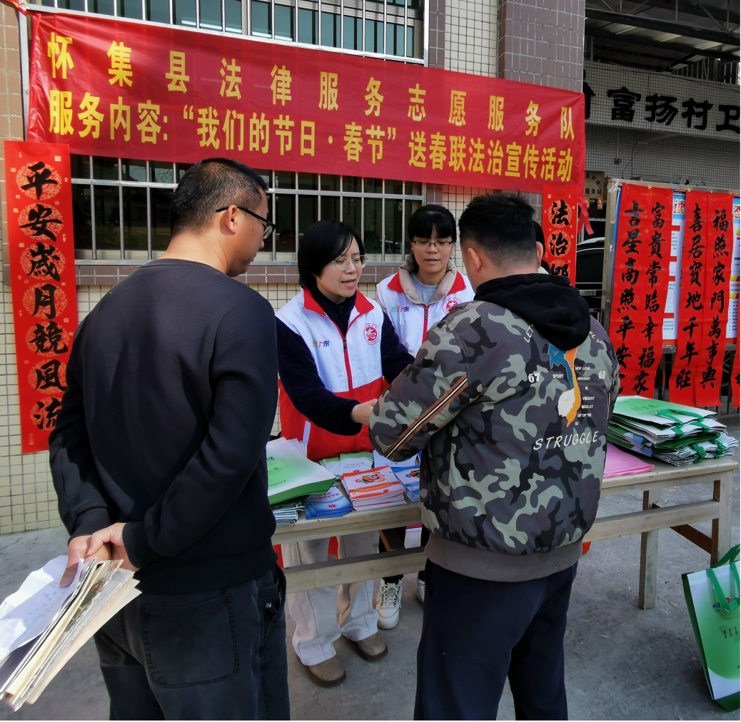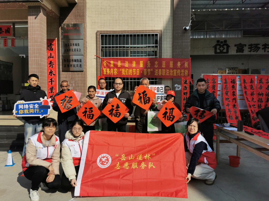 怀集县司法局联合怀城街道富扬村委会开展“我们的节日·春节”送春联法治宣传活动,通过“法治+文化”的形式,为群众送上充满年味的新春法治“礼包”,助力营造岁末年初平安祥和的节日氛围。