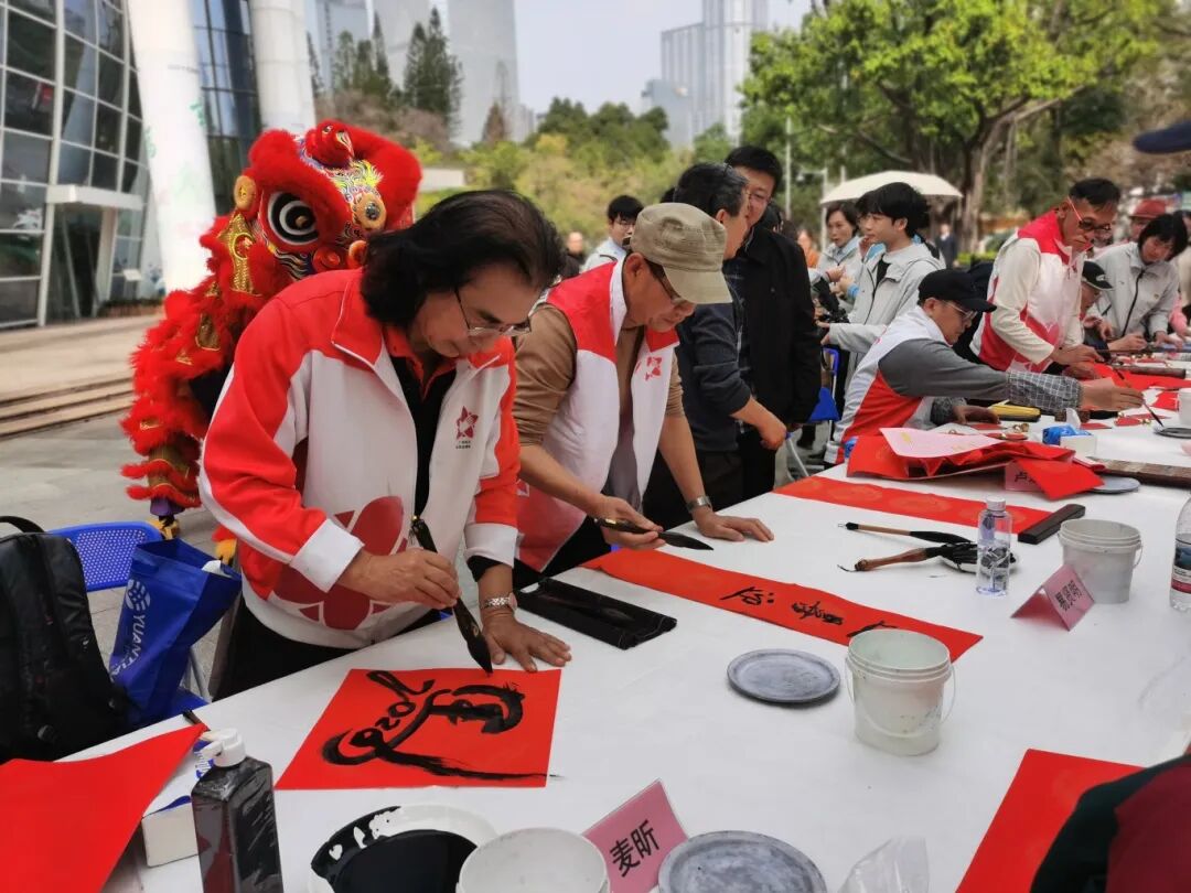 活动现场,跳水奥运冠军杨景辉、技巧世界冠军姚志华、蹦床世界冠军蔡琪子等体育健儿,与陈秋明、陈春盛、李晓白、范桂觉、刘思东、梁晓庄、黄三舍等15位岭南书画名家联袂登场。体育冠军们与市民亲切互动,分享运动生涯故事,传递拼搏向上的体育精神。一幅幅笔力遒劲的“福”字、一对对寓意吉祥的春联在红纸上绽放,承载着满满心意被送到市民手中,传递浓浓年味与真挚祝福。