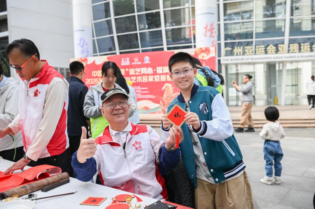 2月4日,由广州市体育工会委员会、广州体育文化博物馆、广州市体育文化协会联合主办的“体艺同心•福满万家”2026年体育冠军与艺术名家迎新春送“福”活动在广州体育文化博物馆圆满举办。活动通过奥运冠军与艺术名家的跨界联动,为市民送上一场融合体育精神与传统美学的文化盛宴。