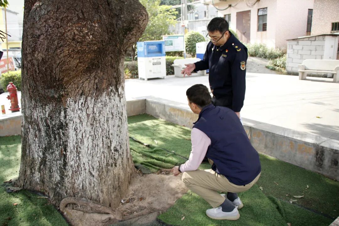 连日来,大朗城管分局组织巡查队伍,对辖区内的古树名木开展专项巡查,通过细致排查,用心守护这些承载着乡土记忆的“绿色活文物”。