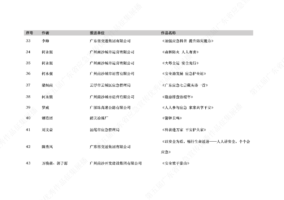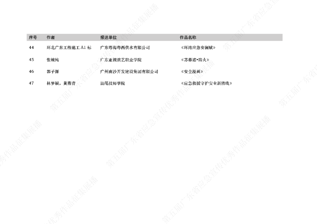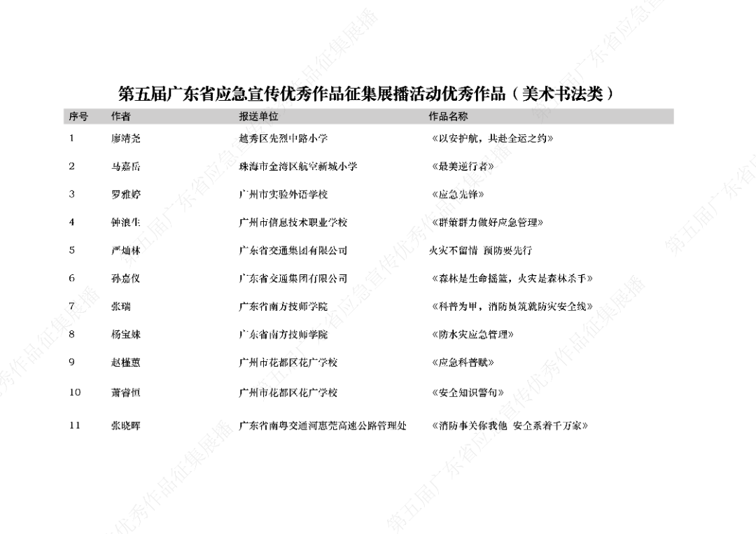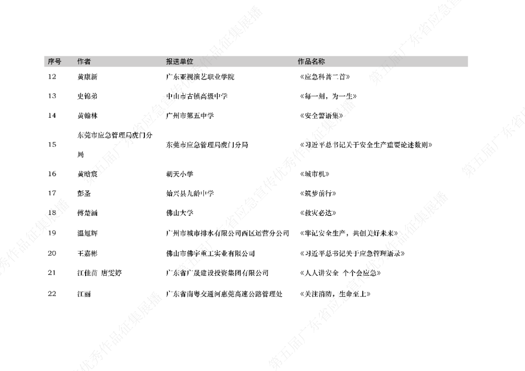 由广东省应急管理厅、广东省教育厅、广东省文化和旅游厅、广东省广播电视局、广东省总工会、共青团广东省委员会、广东省科学技术协会共同举办的第五届广东省应急宣传优秀作品征集展播活动,结果公布啦!!!