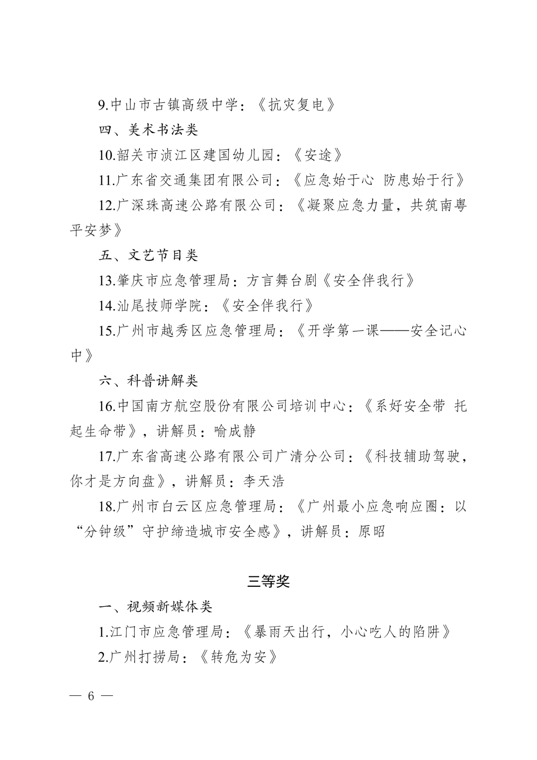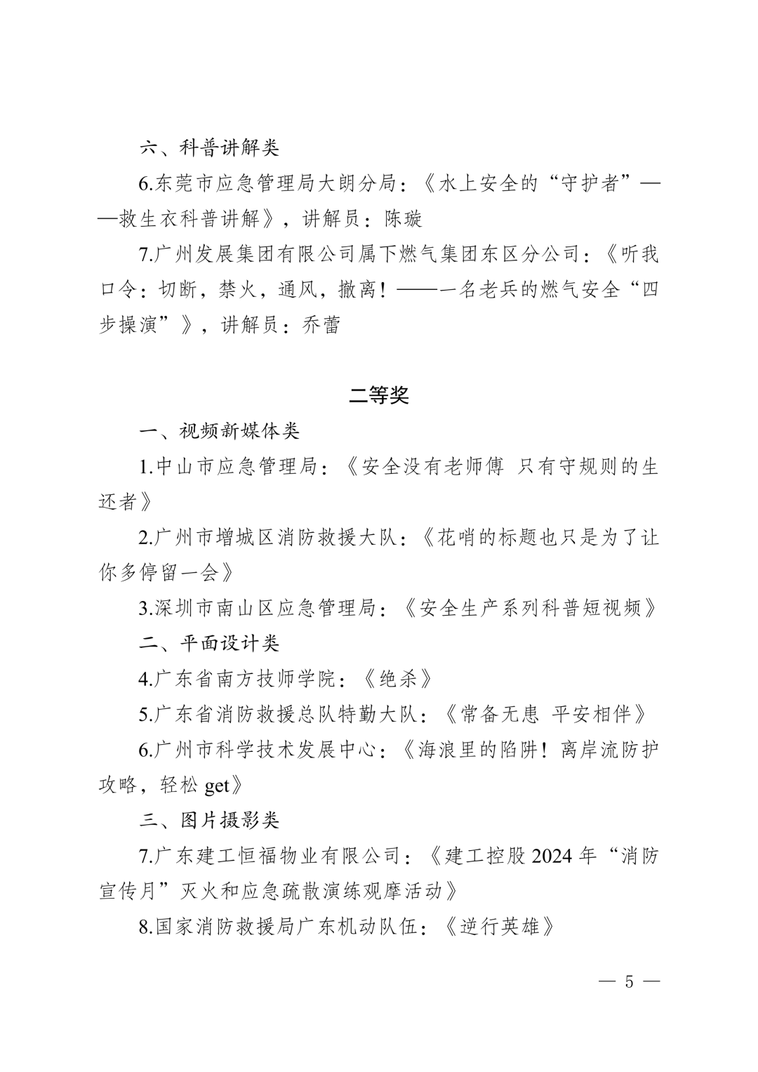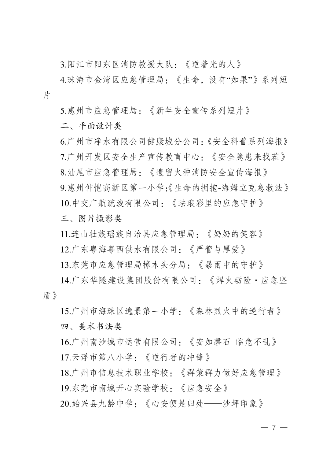 由广东省应急管理厅、广东省教育厅、广东省文化和旅游厅、广东省广播电视局、广东省总工会、共青团广东省委员会、广东省科学技术协会共同举办的第五届广东省应急宣传优秀作品征集展播活动,结果公布啦!!!