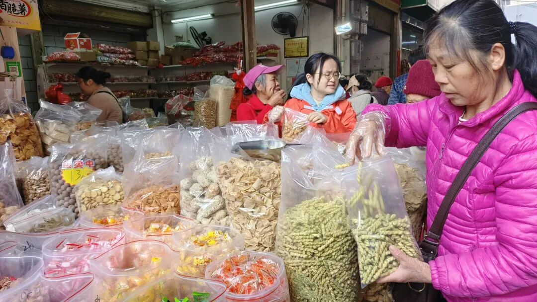 一旁的聂女士也已挑选好满满一袋年货,其中不乏本地特色红瓜子和葵瓜子。谈及置办炒货的意义,她的语气里满是对年味的期待。“年味来啦!我买的都是咱们本地的红瓜子和葵瓜子,现在家家户户生活条件都好了,一进腊月,基本上都会先备上这些炒货。”