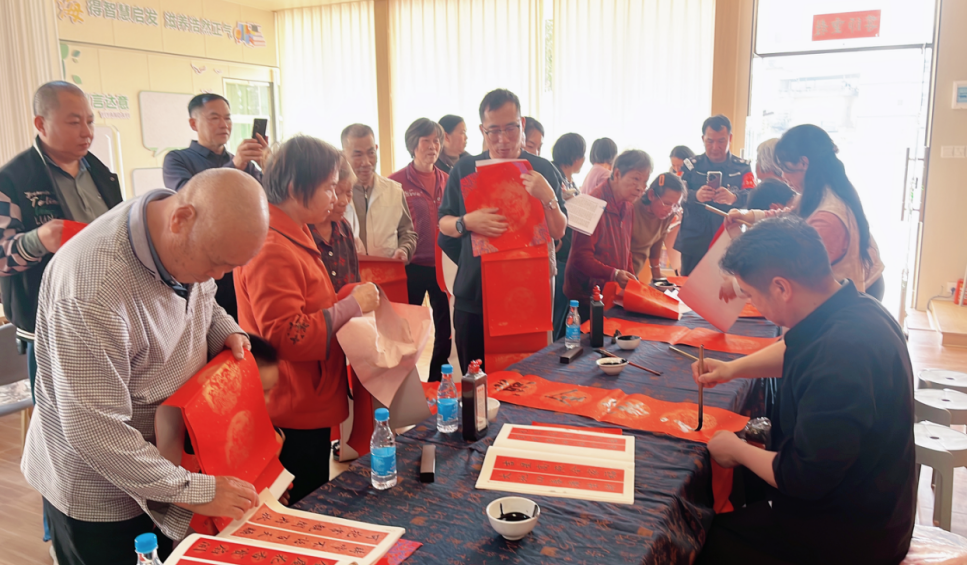 活动期间,各书屋所属的镇(街)、村委及相关学校等单位严密组织,村民们有序领取,一张张带着墨香的春联,不仅装点了即将到来的新春,更让传统年俗文化在乡村的烟火气里落地生根。