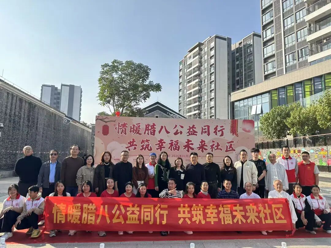 广州社联联合花都社联开展“情暖腊八公益同行,共筑幸福未来社区”公益惠民活动。活动由广州社联联合市励善公益基金会、广州社联困境儿童关爱中心、市智慧养老促进会、花都区社会组织联合会、花都区振兴社会工作服务中心等市、区社会组织共同主办,市社会组织志愿服务总队、花都区银铃行动志愿服务队等志愿服务队伍协办,花都区民政局党组成员、副局长祝志科、四级调研员朱志春,广州社联常务副会长兼秘书长、市社会组织志愿服务总队队长焦杨,广州社联常务副秘书长、关爱中心秘书长庄秀英,广州社联副秘书长王俊,市励善公益基金会秘书长周维,市智慧养老促进会会长、花都社联会长杨威,平龙社区居委会主任郑燕玲以及市瓶装液化气行业协会秘书长黄铮,广州民建文化艺术院委员赵蕾等出席活动,活动花都区花山镇平龙未来社区开展,通过文艺表演、特殊群体关怀、健康义诊、义卖集市等融合公益活动,与现场百余位社区居民共度腊八节。
