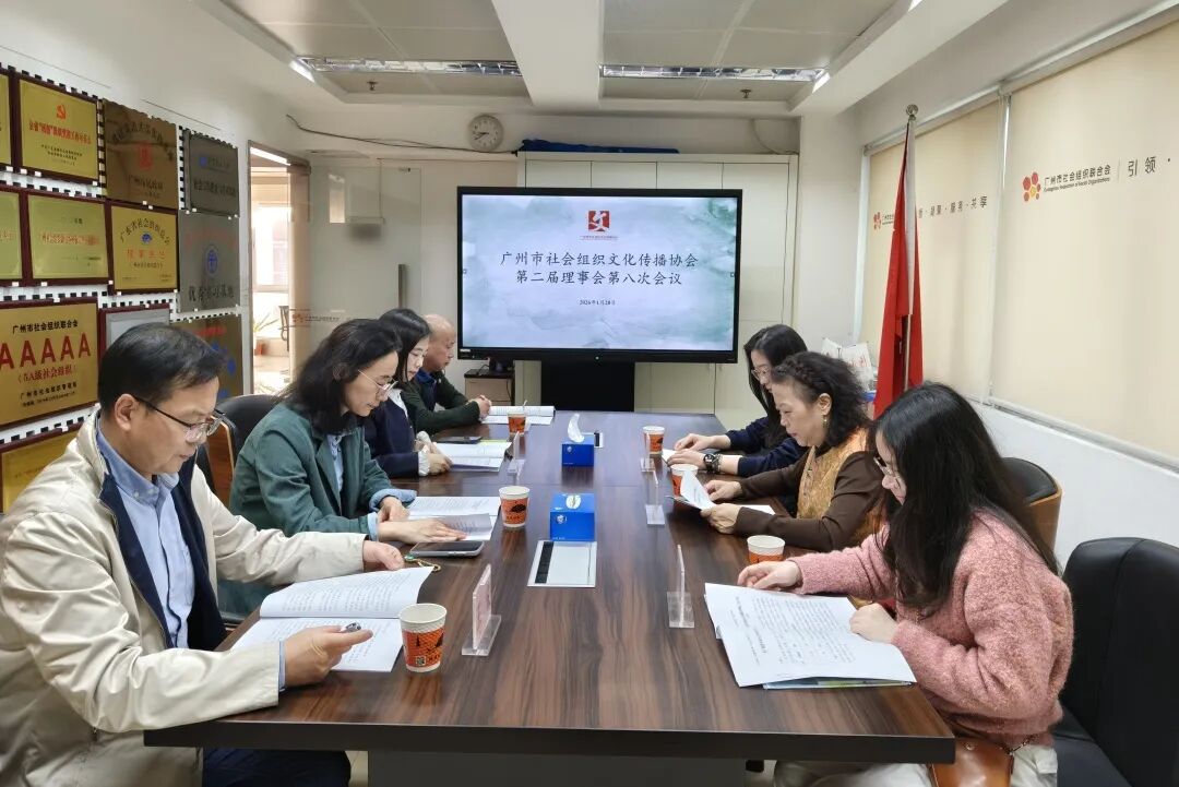广州市社会组织文化传播协会在市社会组织培育基地701会议室召开第二届理事会第八次会议。