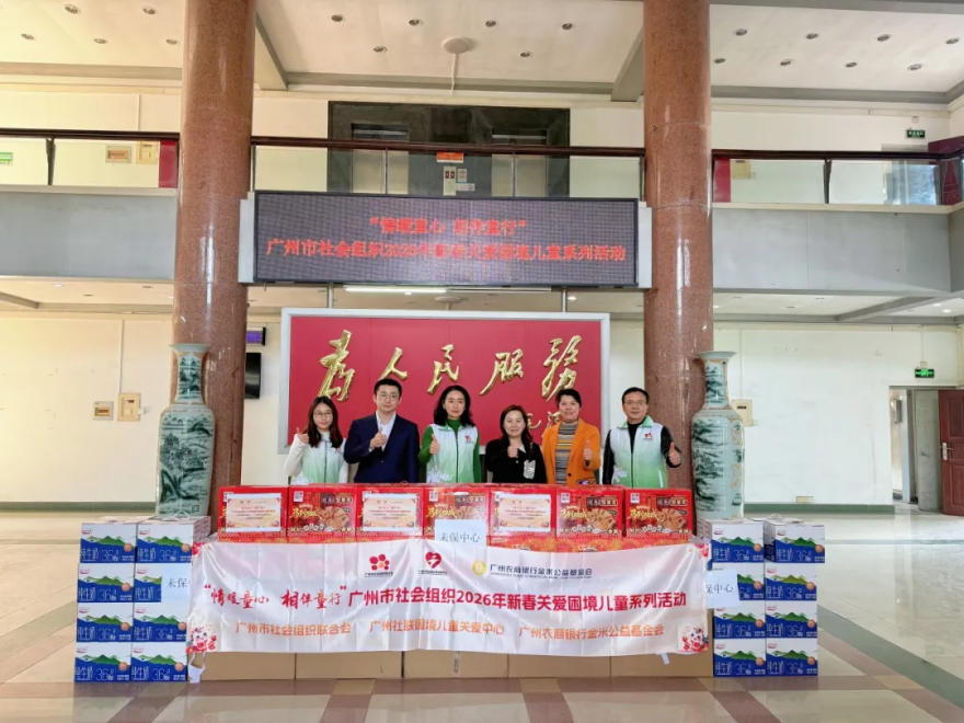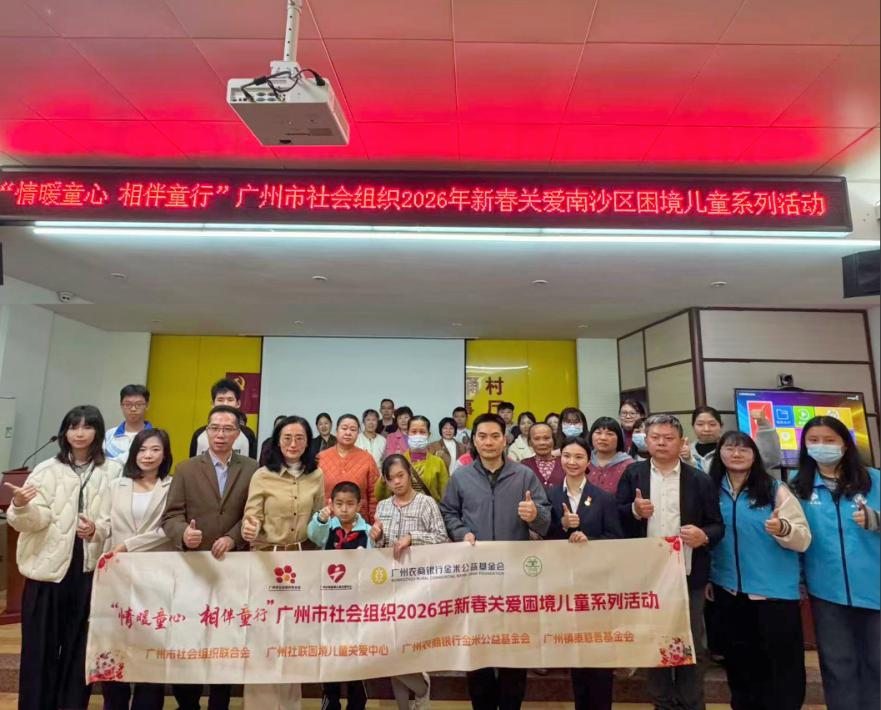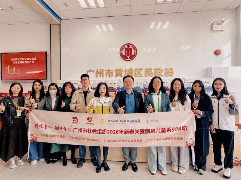 “情暖童心 相伴童行”广州市社会组织2026年新春关爱困境儿童系列活动在黄埔区开展。活动得到广州农商银行金米公益基金会和广州市视源公益慈善基金会的支持,捐赠约3.2万元物资用于慰问黄埔区200户困境儿童家庭。黄埔区民政局党组副书记、副局长洪耿裕,广州社联常务副会长兼秘书长焦杨,广州社联常务副秘书长、关爱中心秘书长庄秀英,广州农商银行黄埔支行经理温情,市视源公益慈善基金会秘书长丘俊辉出席捐赠仪式。捐赠仪式后,主办单位、捐赠方与有关部门代表走访慰问困难儿童家庭,送去新春祝福。