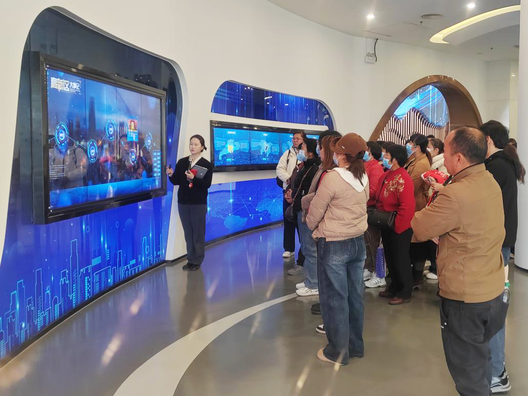考察活动首站设在肇庆高新区创新创业科学园规划展示中心。通过系统化的展陈介绍、发展规划宣传片及专人讲解,村民们全面了解了高新区的功能布局、产业发展态势、人才需求结构以及各项就业创业扶持政策,对区域发展前景和就业机会形成了清晰认识。