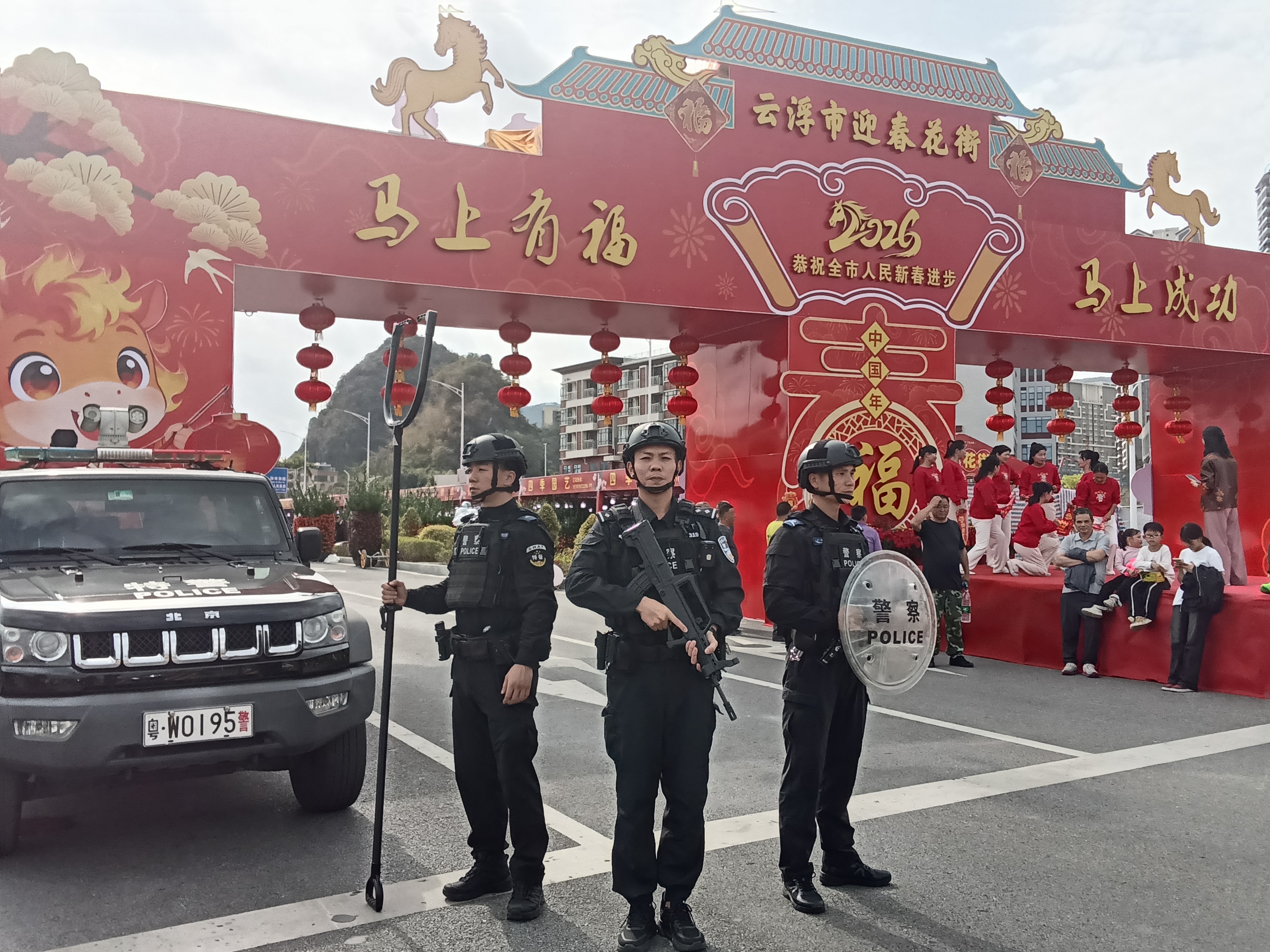 花市人气旺盛,平安秩序的背后是公安民警的全天候守护。现场治安民警组成巡逻小组,穿梭于花街人流中,及时排查隐患、化解纠纷,随时回应市民求助。特警队员配备专业装备,在重点区域开展机动巡逻,提高见警率与处置效率,成为花市中一道温暖而可靠的风“警”线。交警部门部署警力,在花市周边主要路口、路段加强指挥疏导,通过手势引导、信号调控等方式确保车流有序、人行安全,及时处置轻微事故,防止交通拥堵。