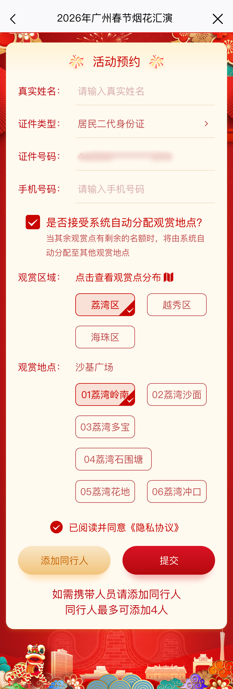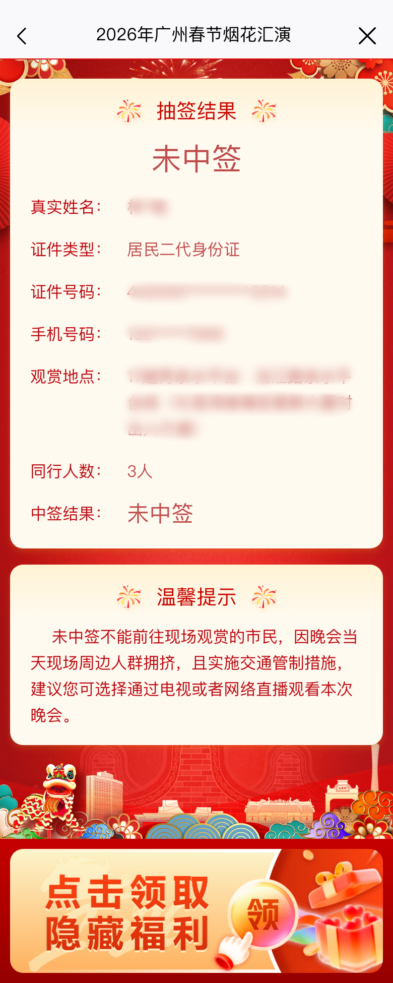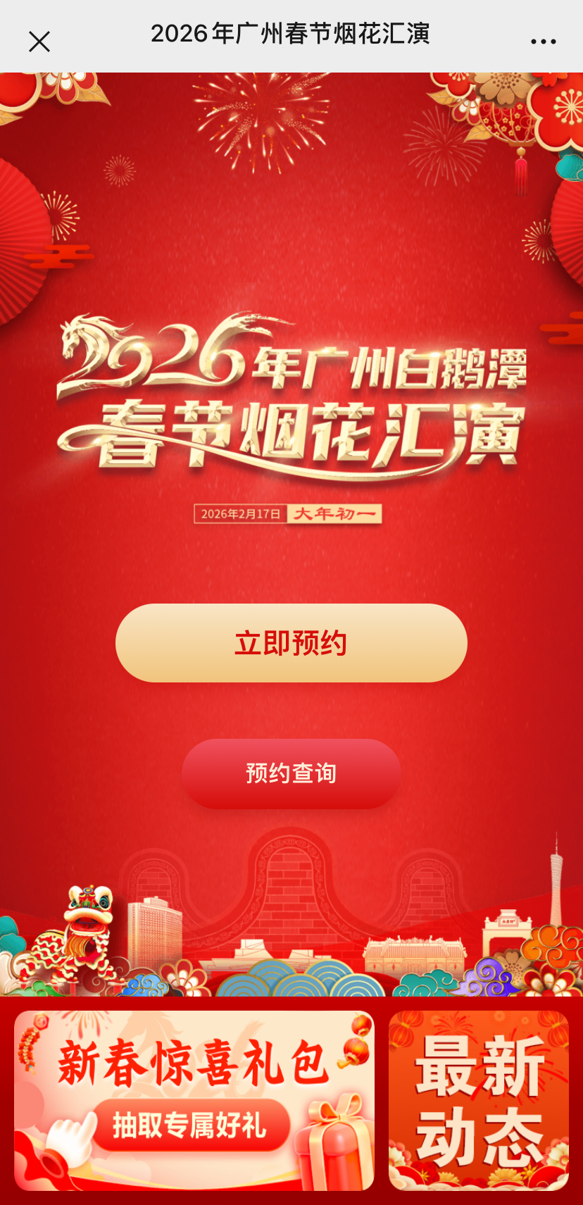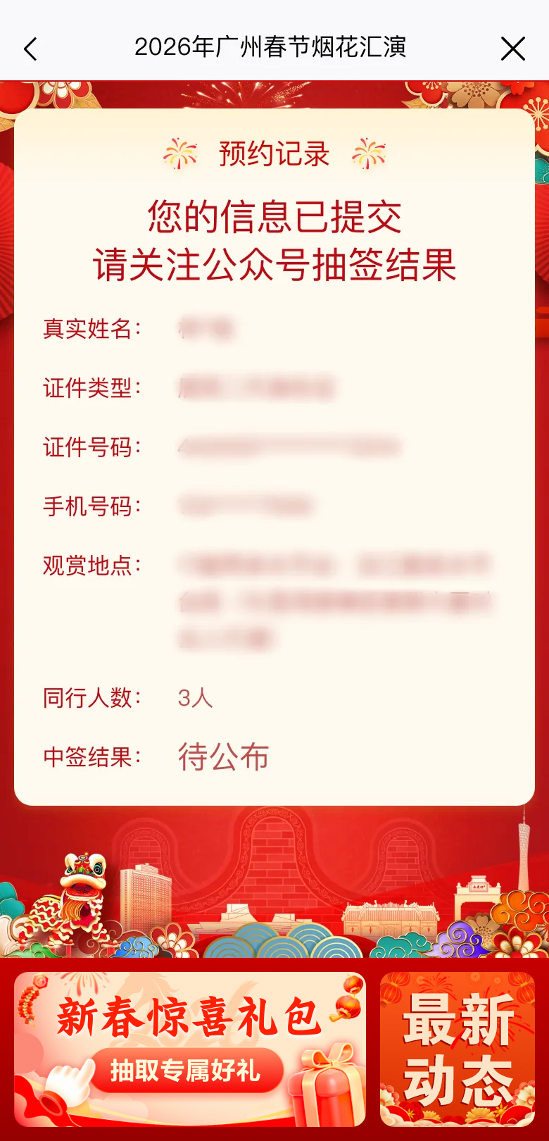 本次春节烟花汇演观赏区入场资格实行预约单抽签机制。