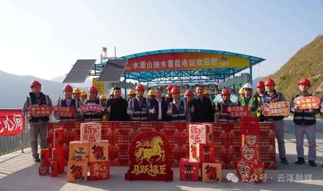在水源山抽水蓄能电站在建项目现场,慰问团实地察看项目建设进展情况,详细了解项目安全生产管控、工人食宿安排等落实情况。慰问团指出,水源山抽水蓄能电站项目事关地方能源结构优化和经济社会高质量发展,建设单位要切实扛起主体责任,严格落实安全生产各项措施,合理安排施工进度,让工人们安心工作、舒心过节。