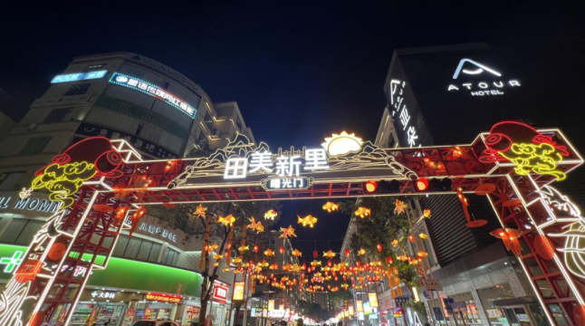 2024年9月,“田美新里”特色商业街首期项目田美夜市盛大启市,集聚夜市摊位300余个、提供就业岗位上千个。项目首期运营后月均客流超30万人次,2026年元旦3天接待游客超10万人次、拉动消费250万元,商户营收平均增长10%—15%。