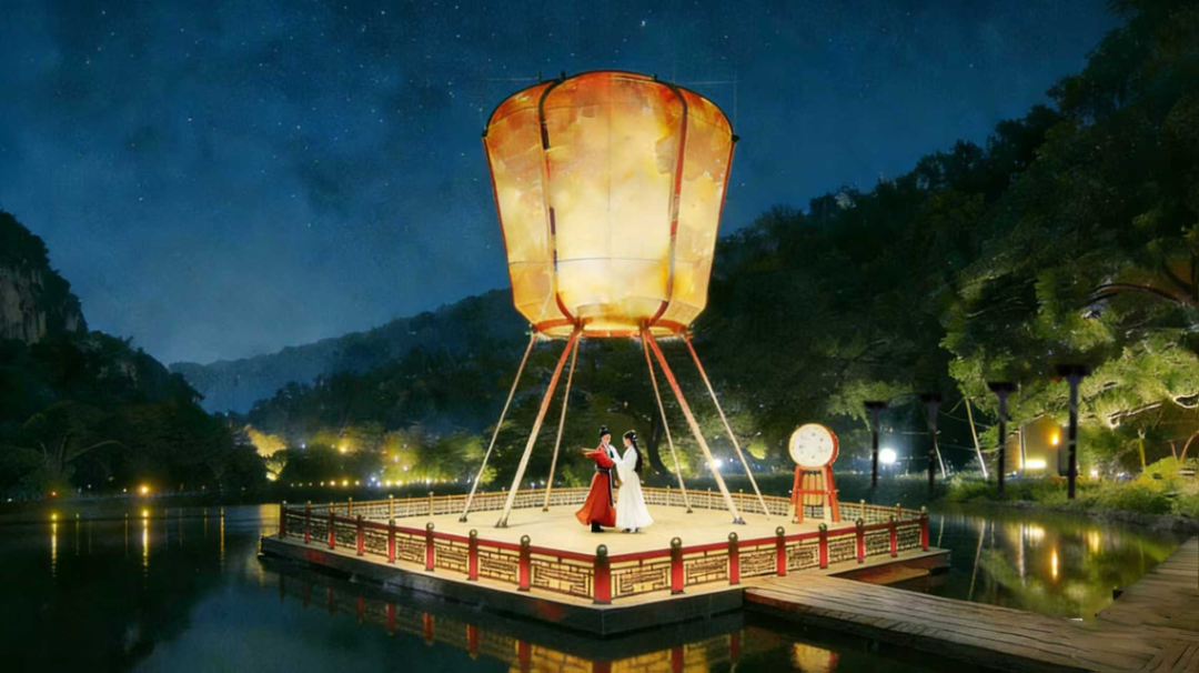 肇城雅韵灯区:含鸡蛋花光影长廊、200盏复古灯笼湖畔灯廊,以及包公端砚、火烈鸟等特色灯组;