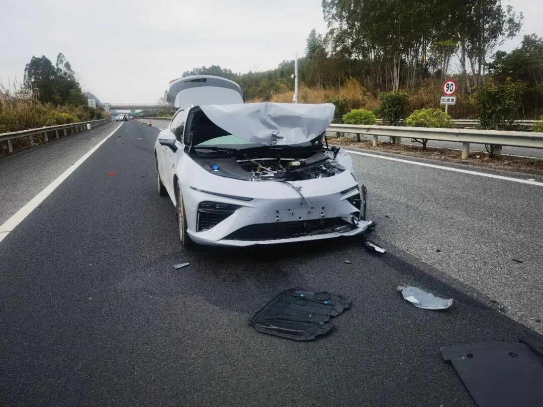 当天15时47分许,来宾市公安局交通管理支队高速公路二大队接到报警,在S52平那高速来宾段突发一起追尾事故:一辆小车径直撞上前方正常行驶的轻型货车,巨大的撞击力让小车车头严重变形、引擎盖高高隆起,货车则被推着滑行至应急车道,路面上散落着大量车身碎片,现场一片狼藉。
