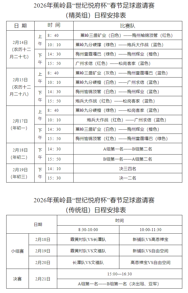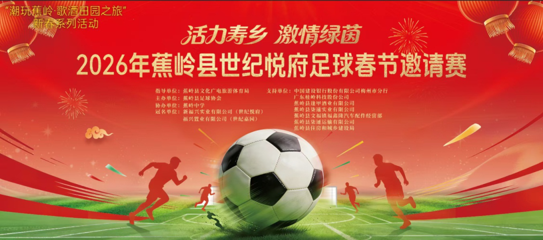 甲辰辞旧岁,丙午迎马年!蕉岭县“潮玩蕉岭・歌酒田园之旅”新春系列活动——2026年蕉岭县“世纪悦府杯”春节足球邀请赛,即将于2月14日-21日在蕉岭中学熊德龙体育场燃情启幕!
