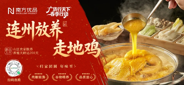家宴,是广府人心中最地道的年味。盆菜纳百福,年鱼寓有余,鸡鸣呈祥瑞,姜醋暖人意……每一道佳肴不仅蕴含着美好的祝福,更承载着围炉团聚的温情。本期,南方优品《广货行天下》专栏,为您呈现一场色香味俱全的“广府家宴”,与您一同品丰馔、享团圆、纳祥瑞,在传承的滋味里,共酿一个温暖幸福的中国年。