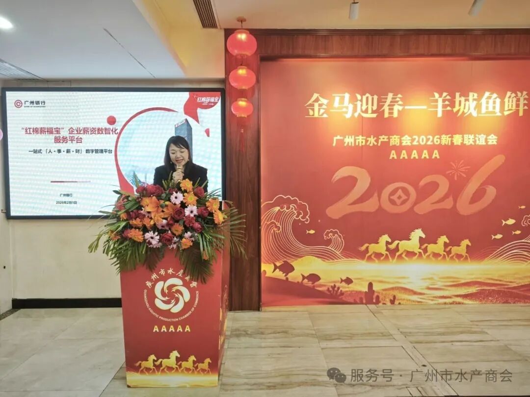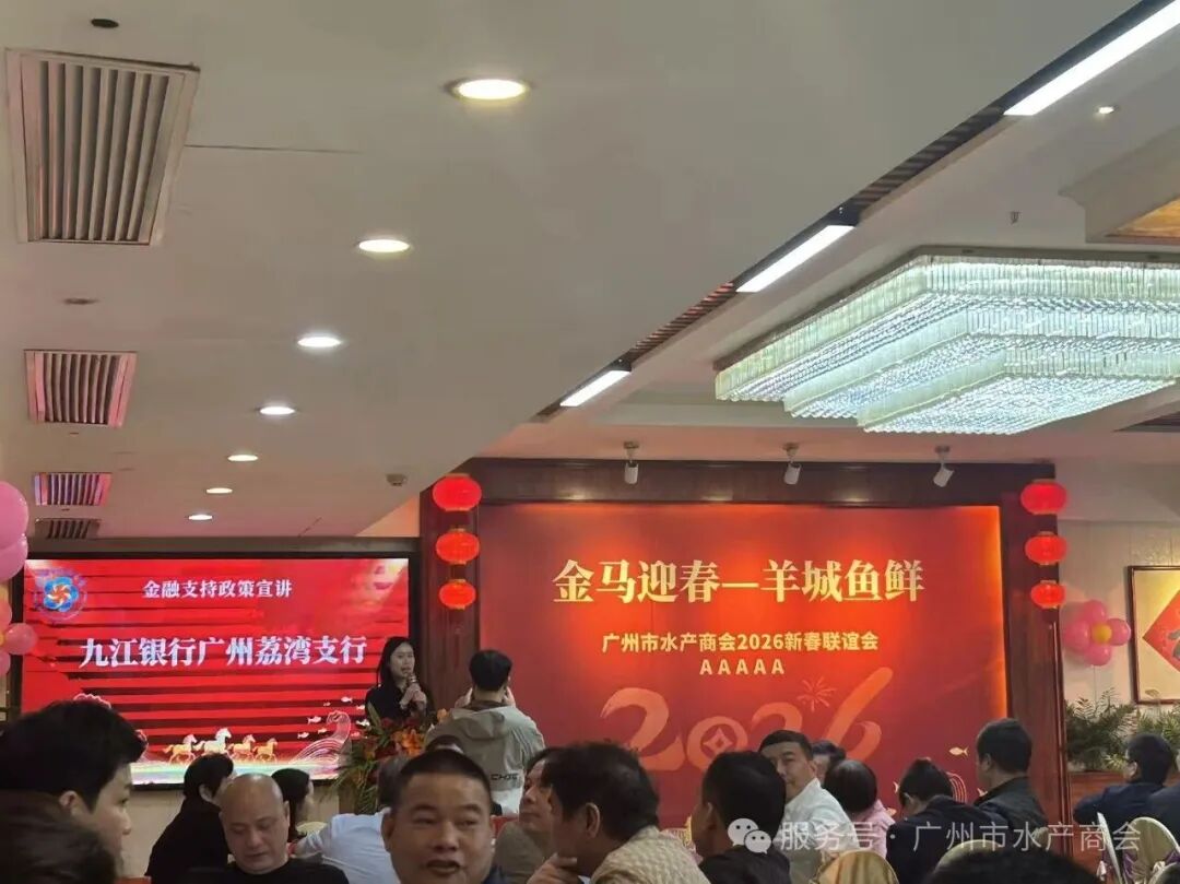 本次新春联谊会内容充实、气氛热烈,圆满成功。会议强化金融支持政策宣讲,推动政企合作,促进会员企业交流,增强行业凝聚力。大会为新会员颁牌匾、为赞助商颁证书,会员企业积极介绍产品、加强合作共识。联谊会强化行业凝聚力,搭建政企银合作平台,为广州水产行业发展注入新动能。商会将持续引领,推动行业国际化、绿色化与可持续发展。