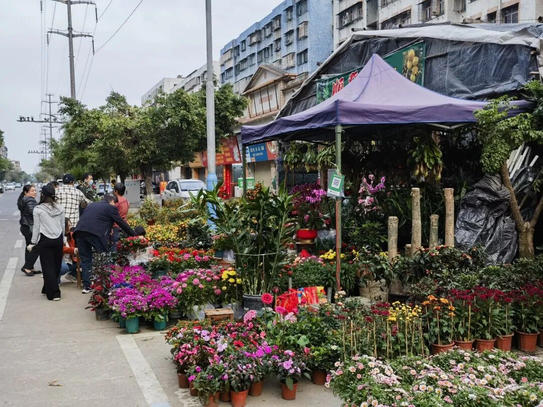 对于年花的选购,档主也有“小妙招”:养花“新手小白”可选长寿花,它好养易活、花开艳丽,能为节日增添亮色;“精致控”不妨选蝴蝶兰,造型多样、花期长,尽显优雅;“喜庆派”钟情三角梅,色彩丰富、红红火火,洋溢着节日氛围;“浪漫氛围家”可选杜鹃,造型优雅;“极简主义者”青睐白掌,可水培可土养、简约又雅致。
