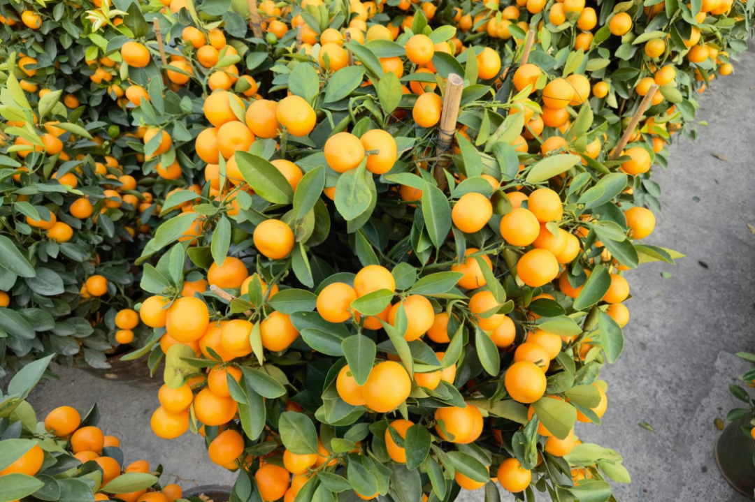 年桔作为过年仪式感的“灵魂担当”,在选购上亦有不少讲究。档主建议大家要观察年桔的挂果量和叶色,尽量选择果实饱满、颜色鲜艳、叶子茂盛的植株,这样的年桔不仅观赏性强,也寓意着新的一年硕果累累、生机盎然。