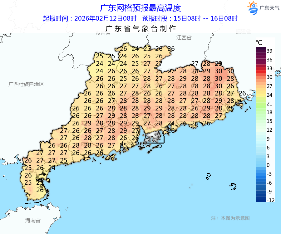 具体来看,12-15日,广东大部多云间晴,气温逐日升高,15日白天最高气温可回升至25~29℃。其中14-15日早晨,西部市县、粤西海面局部有大雾。