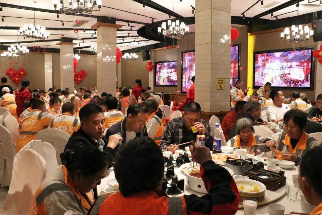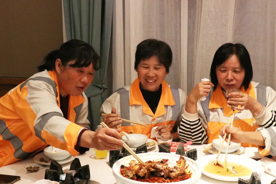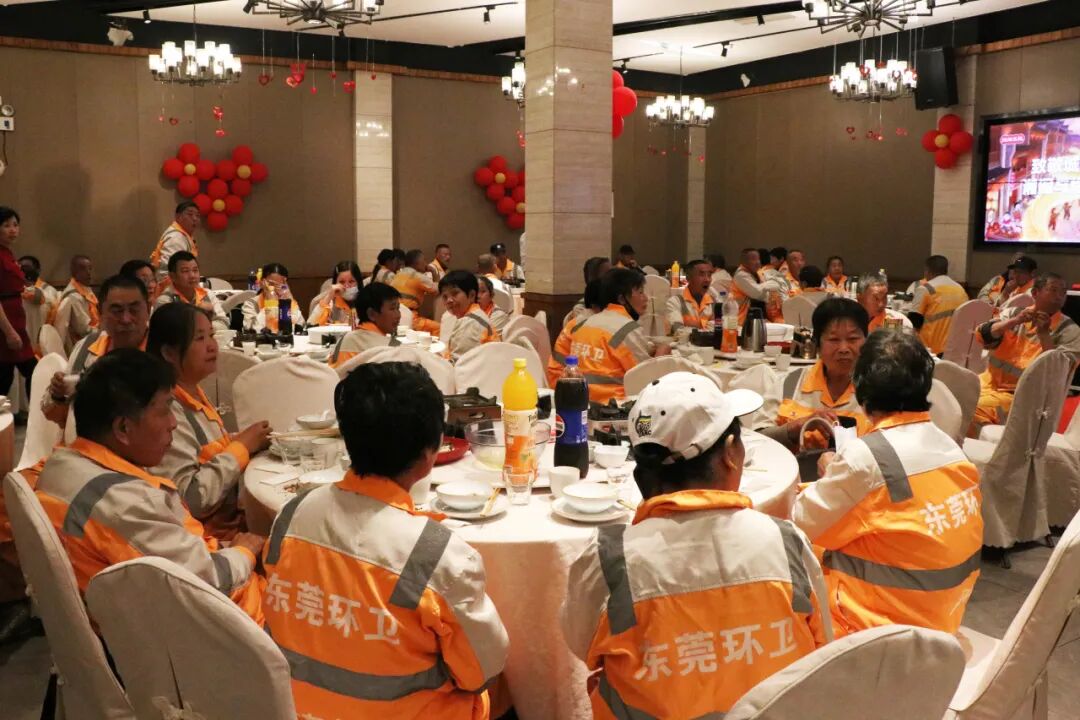 随着一道道热气腾腾的菜肴陆续上桌,这场爱心团圆饭正式拉开帷幕。席间,环卫工人们相互举杯、亲切交谈,分享着工作中的点滴,畅谈着新年的美好期盼。环卫工人们纷纷表示,这顿团圆饭让他们真切感受到了大朗这座城市的温度。