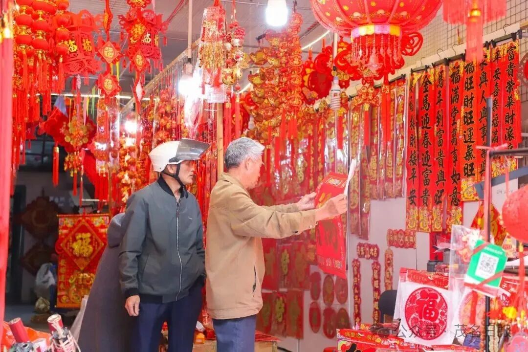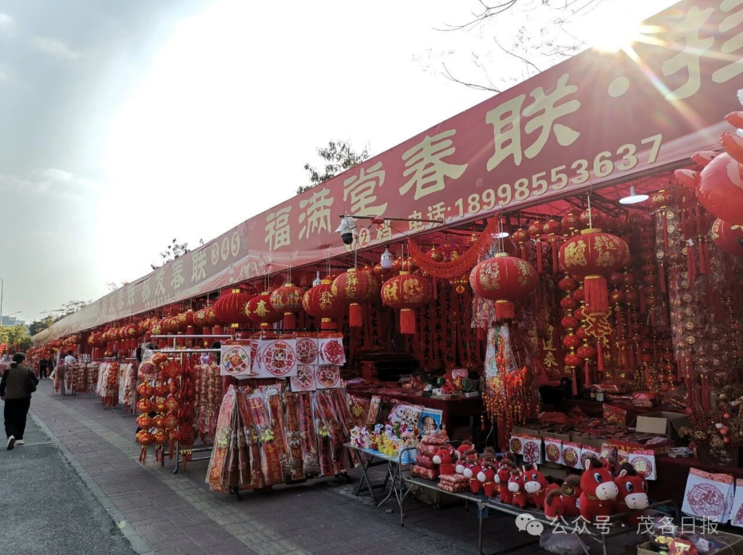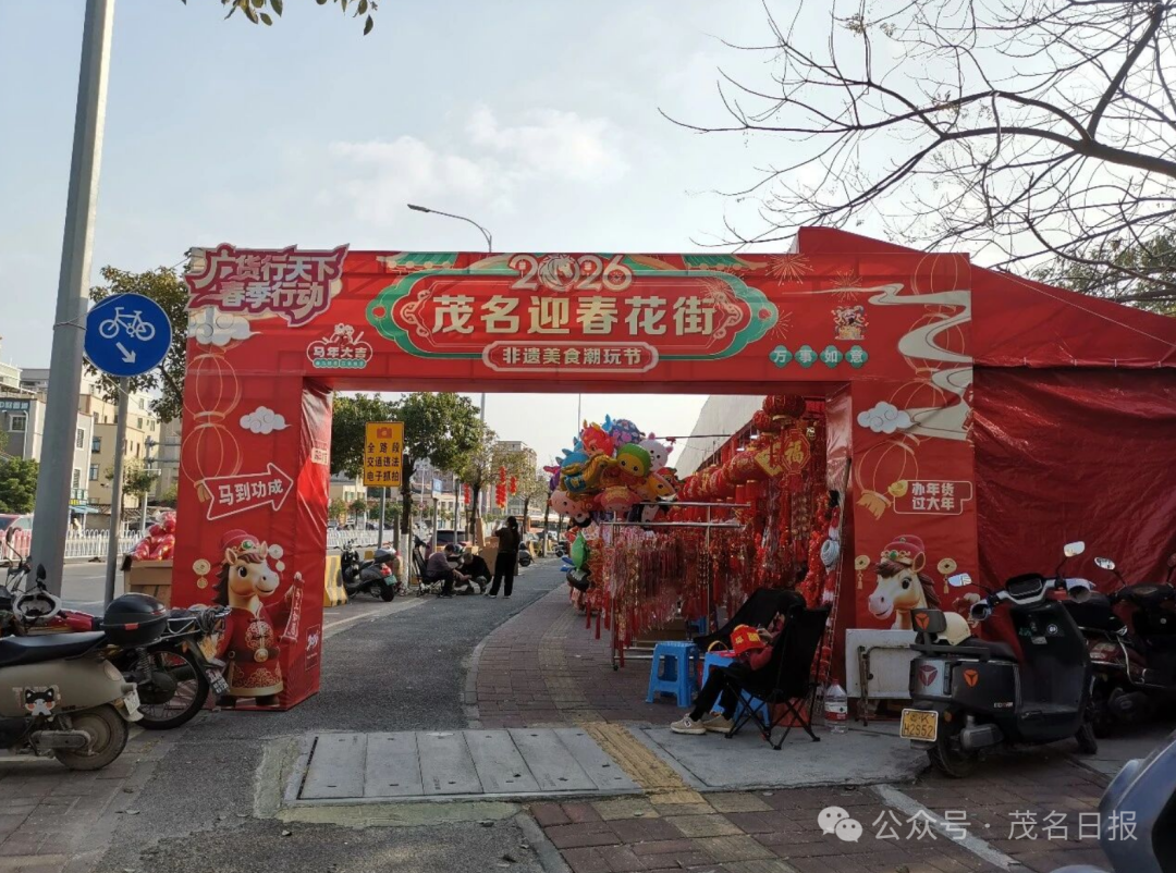 新年临近,茂名市区各地段春联年货花街已是一片红火景象,浓郁的年味弥漫在街巷间,成为市民感受新春氛围、置办年货的热门打卡地。