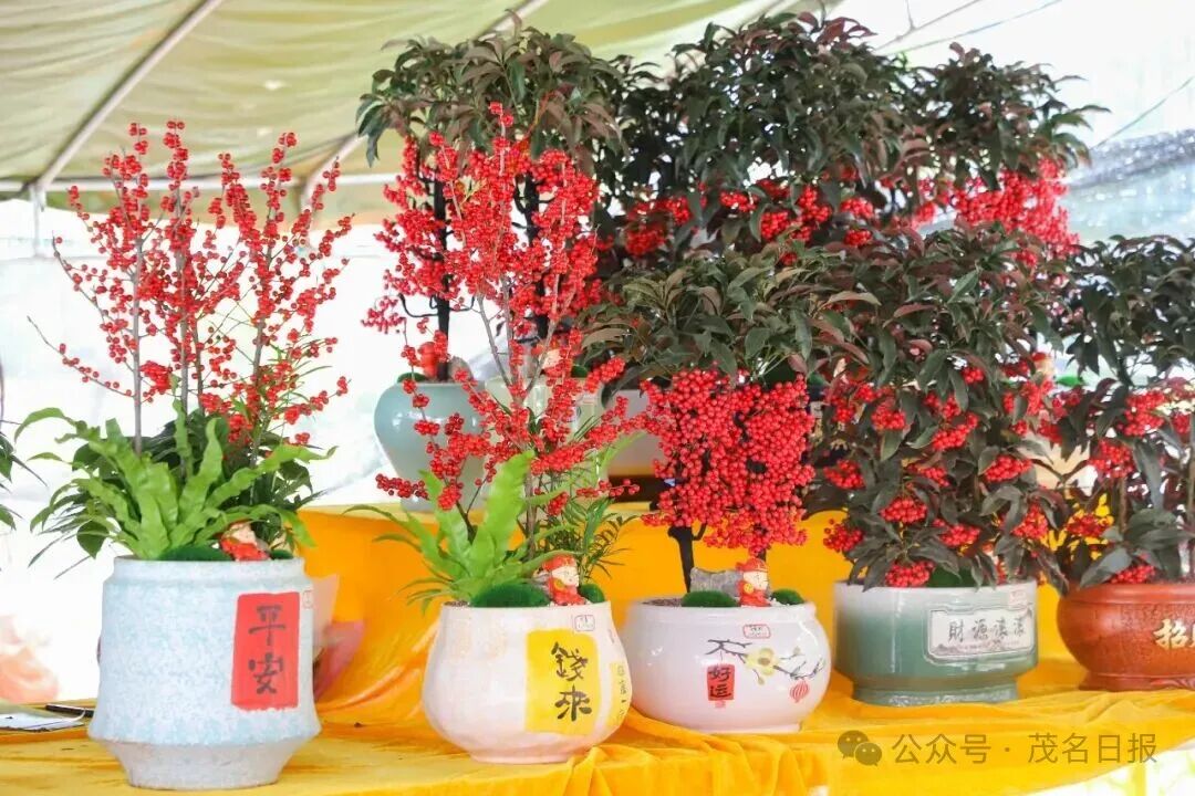 市集现场分为多个展区,汇集了来自茂名各地的特色农产品,包括新鲜果蔬、优质粮油、地方特产、贺年绿植等,充分展示了茂名农业的丰富资源和优质成果。