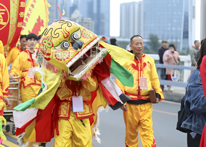 元宵节期间,邀请外市、本地非遗及特色表演队伍与市民共同参与,组建约1000人巡游方阵。