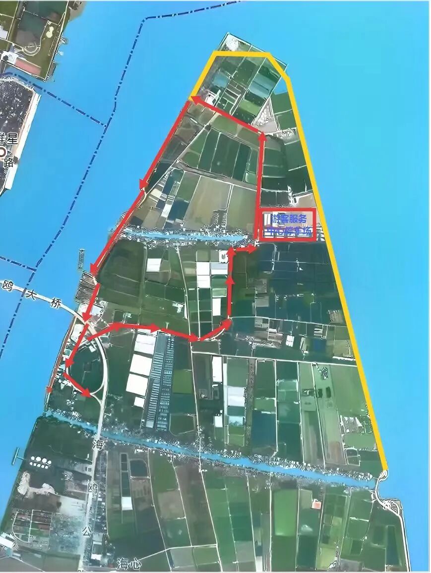 (二)进入游客中心流线:海鸥公路→环岛路进入→直行→环岛中路→游客服务中心→环岛中路→球妹农庄→左转西堤→海鸥桥底→左转环岛路→右转往海鸥公路方向离开。