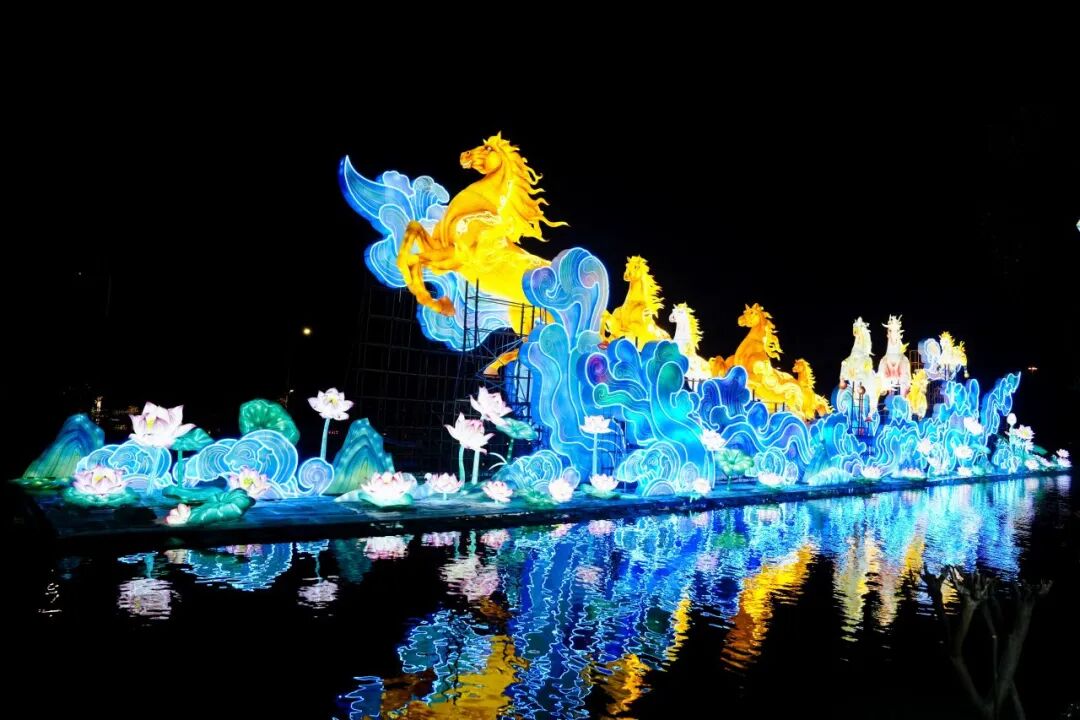 位于地铁14号线神岗站旁的广州8号仓(流溪河奥莱小镇),有持续至3月15日的从化首届“流溪烟渚”新春灯会,《山海经》主题瑞兽灯组搭配2000㎡沉浸式楼体光影秀,夜幕降临流光溢彩,随手一拍都是无需滤镜的大片。