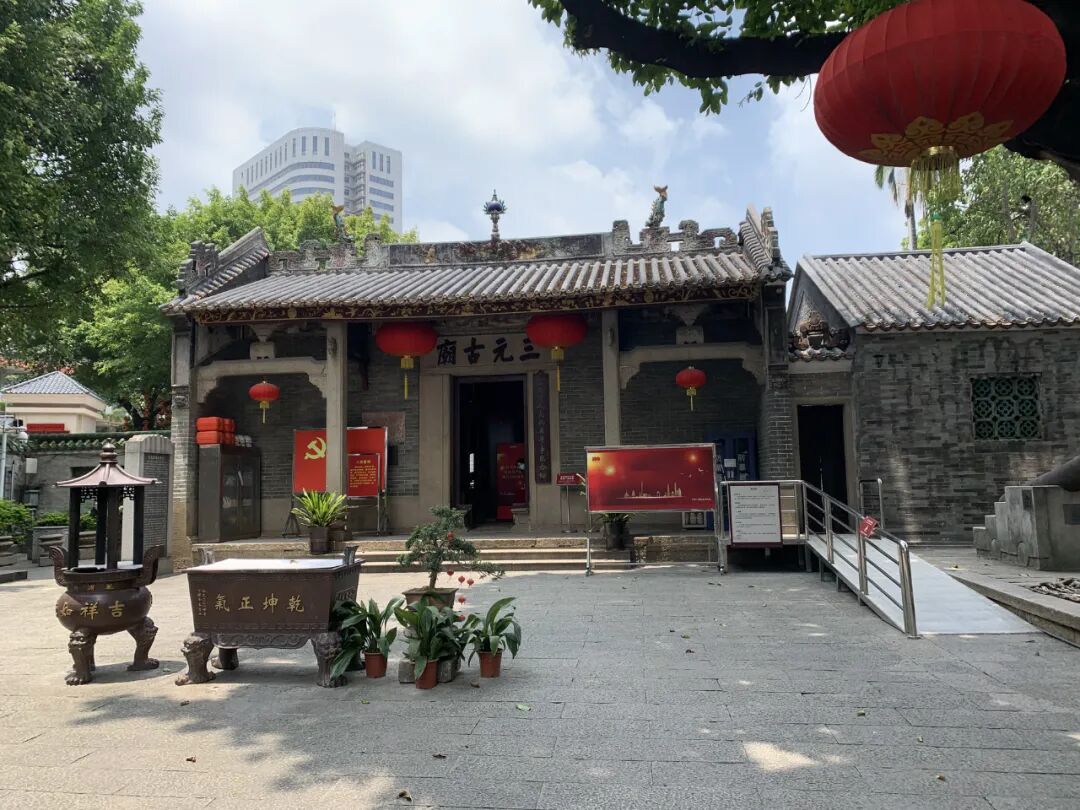 三元里人民抗英斗争纪念馆依托三元古庙而设。三元古庙是一座富有岭南建筑特色的清代庙宇,属形制较完备的北帝庙,庙内有多通碑刻,具有相当的文献史料价值。