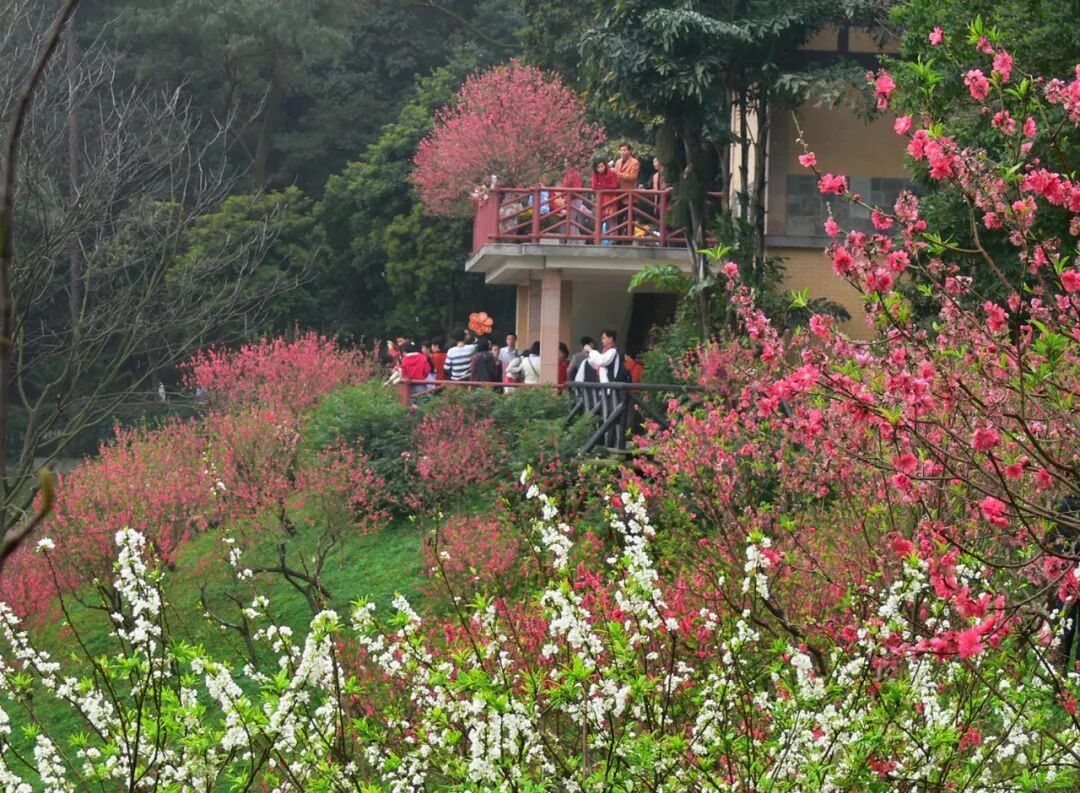 白云山桃花涧内各色桃花悄然绽放,春节假期正值盛花期。从白云山西门到明珠溯溪康养径,从白云山自然科普馆到蒲林草坪,明珠楼景区将成为一张巨大的春日画卷。
