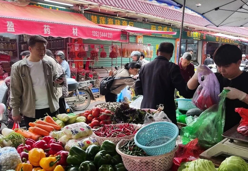 新鲜的蔬菜、活蹦乱跳的鱼虾、热气腾腾的扣肉……琳琅满目的食材摆满了各个摊位,映衬着每个人的笑脸。新春将至,市场的烟火气里,升腾着龙门最温暖、最地道的年味。