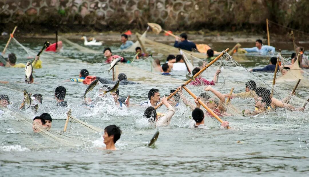 每年正月初三,汶水塘边早早便会敲锣打鼓,鞭炮声此起彼伏,村民和游客闻风而动,拿着渔网、鱼篓、竹筐、水桶等捕鱼工具,在主持人一声令下后,争先恐后跃入水中,感受“迎春接福,丰年有余(鱼)”的传统民俗文化魅力。