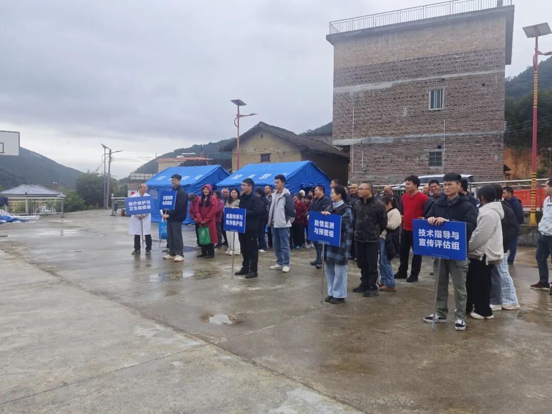 演练模拟寨局村后山因持续强降雨出现黄泥水浑浊喷涌、边坡局部滑移等泥石流前兆。监测员迅速敲锣示警、发布预警,疏散组按“分片包户”原则组织群众沿预定路线有序撤离,并对老弱病残实施“一对一”帮扶,全部人员安全转移至临时安置点。安置点内,后勤组发放饮用水和食品,医疗组设立临时医疗站演示急救操作,技术组讲解泥石流前兆识别与避险知识,有效提升群众防灾意识和自救互救能力。