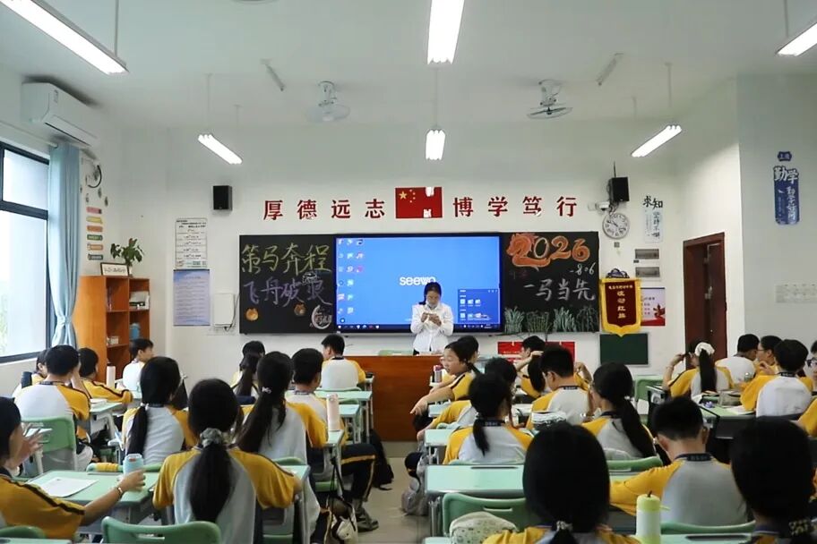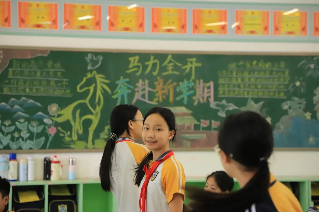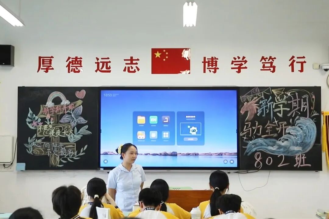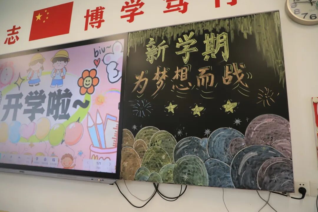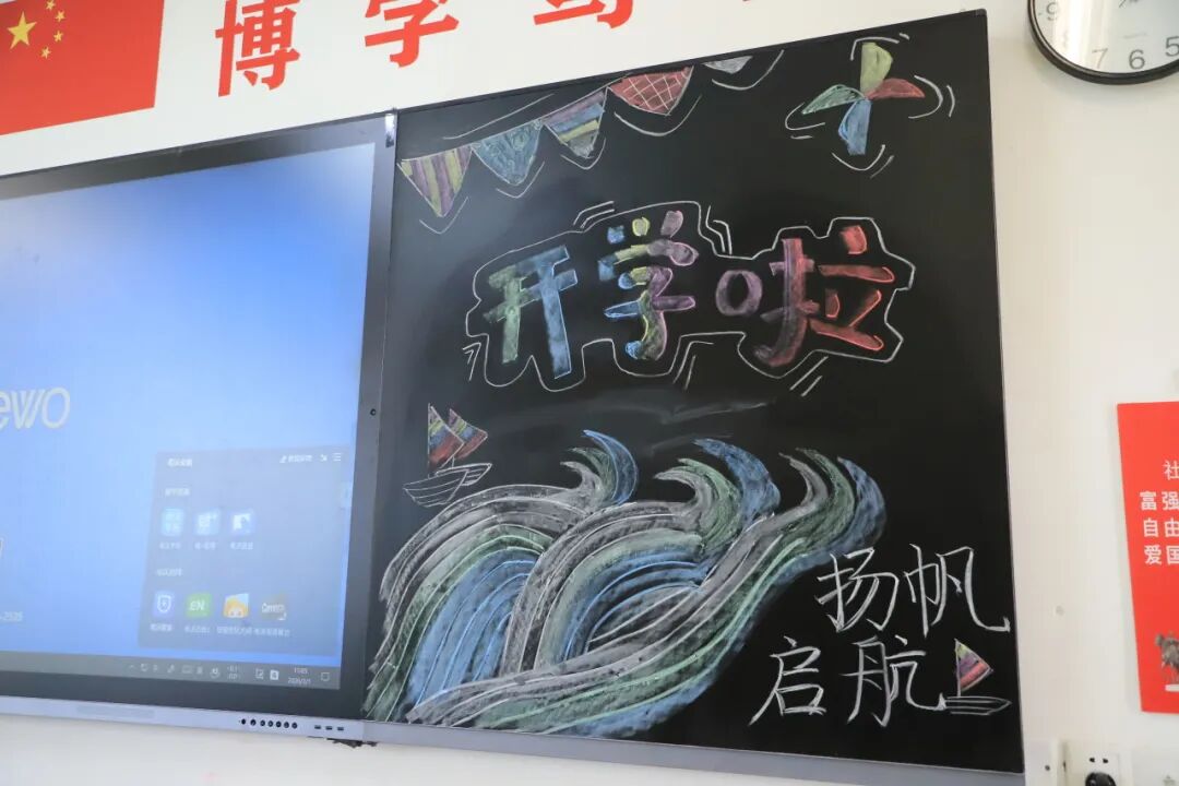 教室里,班主任早早等候,黑板上“新学期,你好!”的粉笔字格外醒目,窗明几净的学习环境静待新学期的开启。