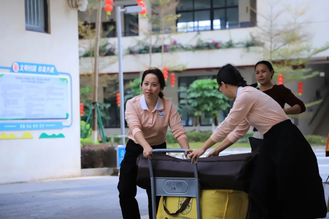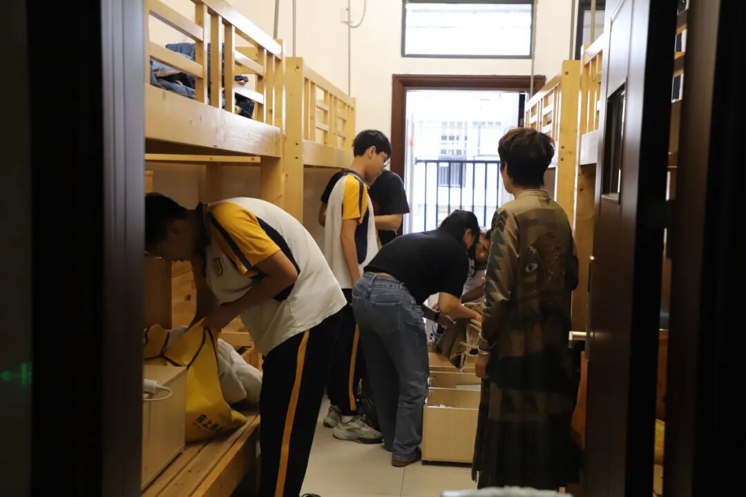 宿舍区里,学生们忙着整理床铺、摆放行李,在互助中重温集体生活的温馨。