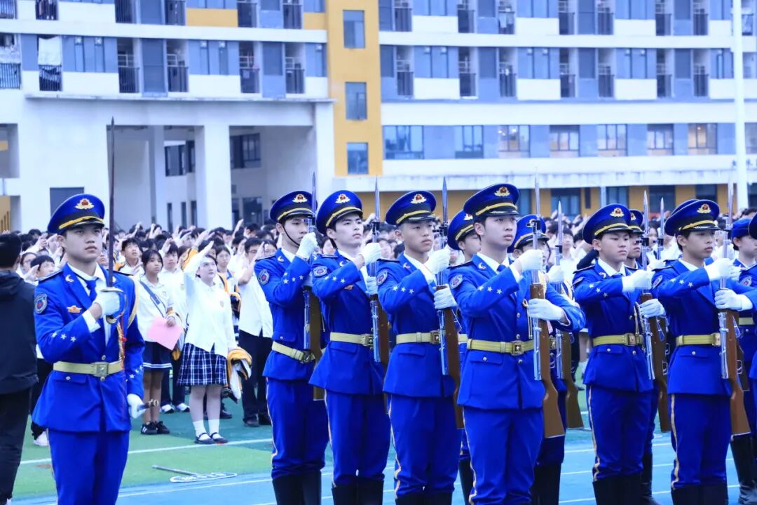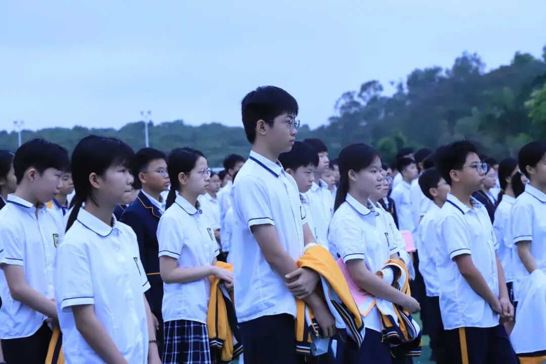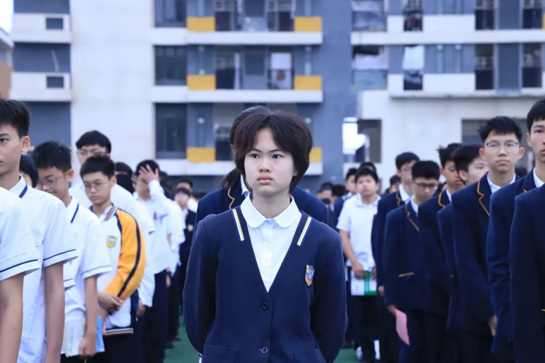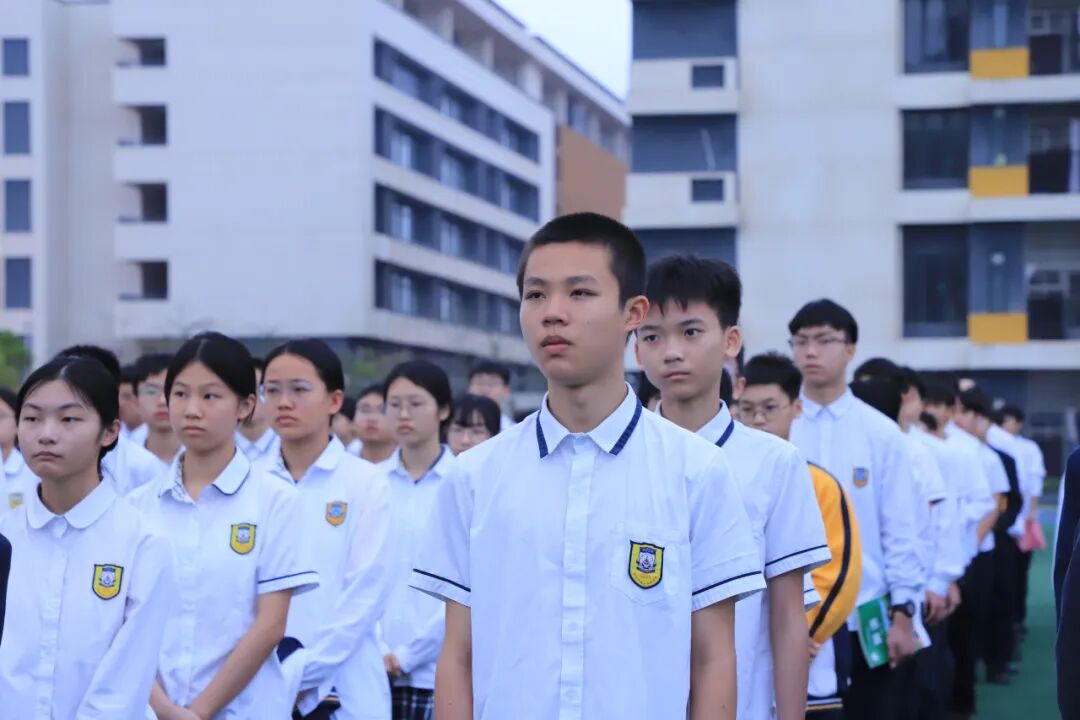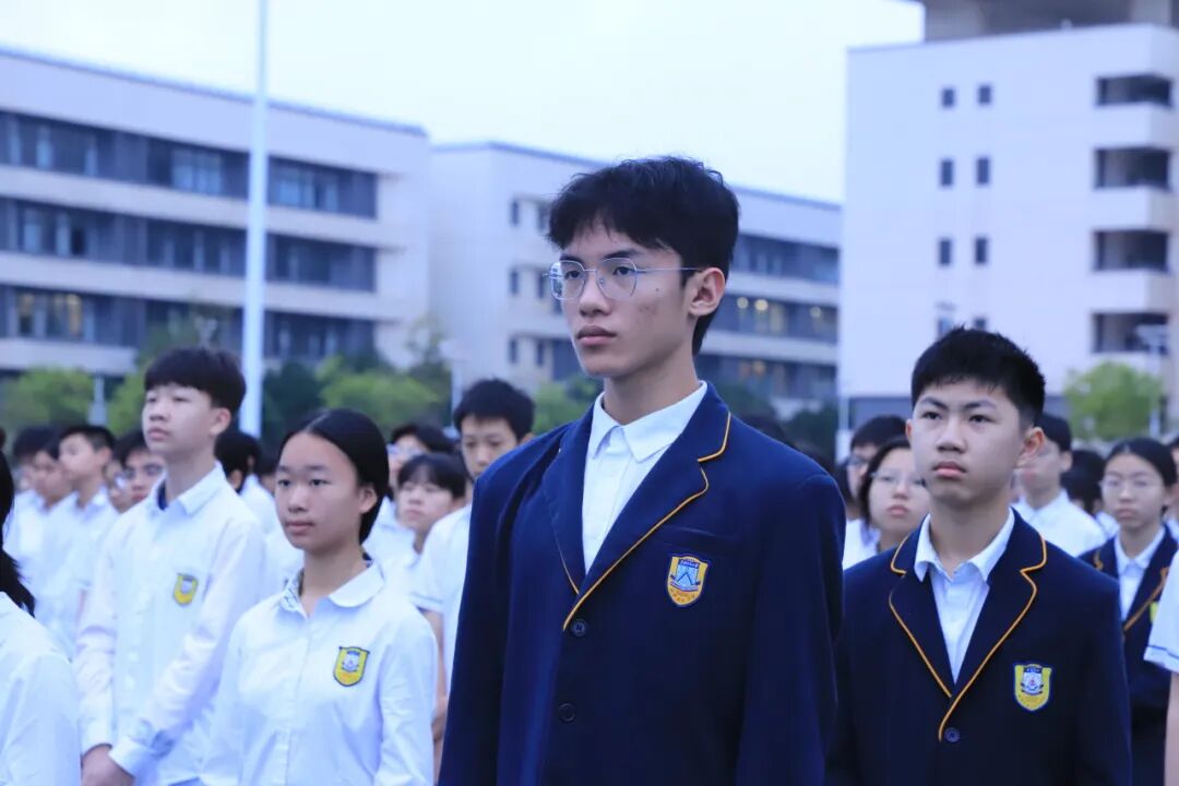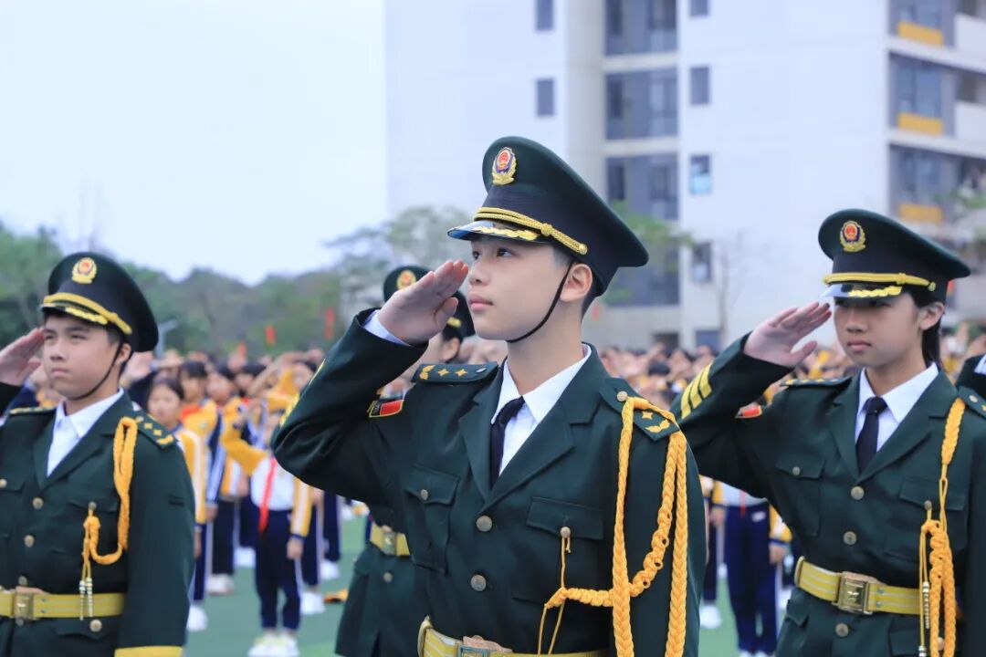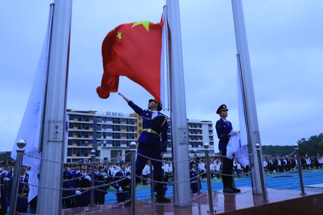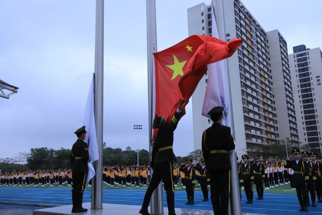 伴随着激昂的进场曲,升旗仪式正式开始。国旗、校旗、集团旗冉冉升起,全体师生肃立行注目礼,嘹亮的国歌响彻运动场,每一个音符都承载着少年的爱国情怀与奋进之志,诉说着对祖国的无限热爱与美好祝福。