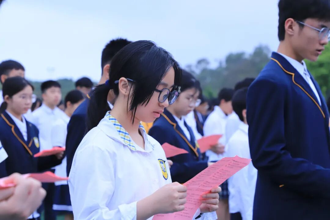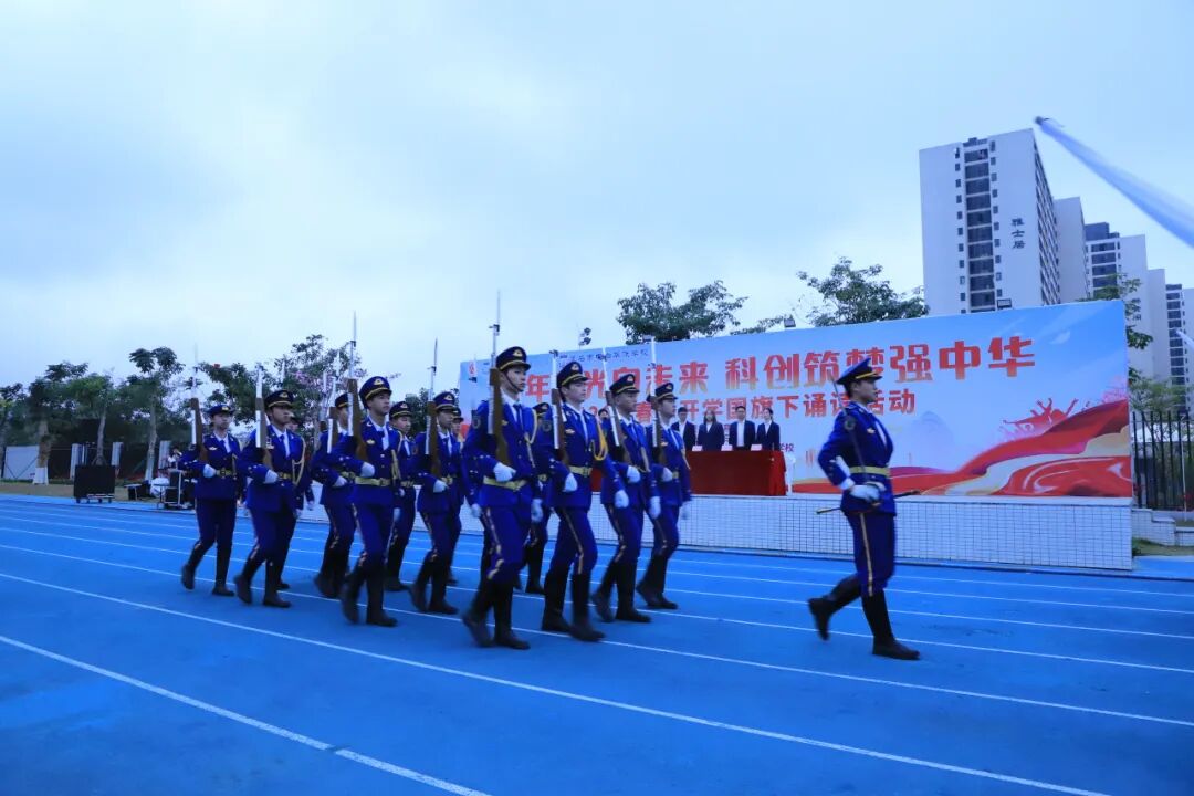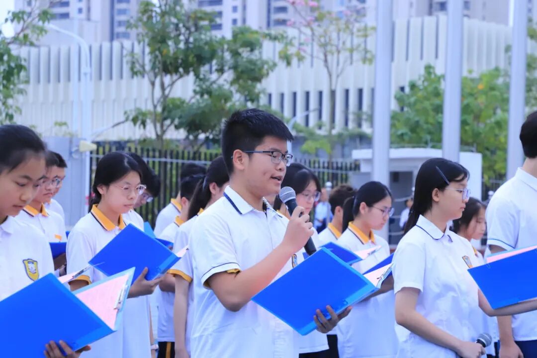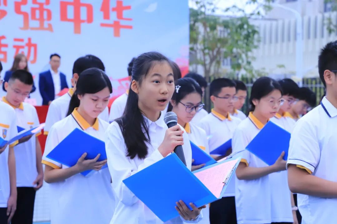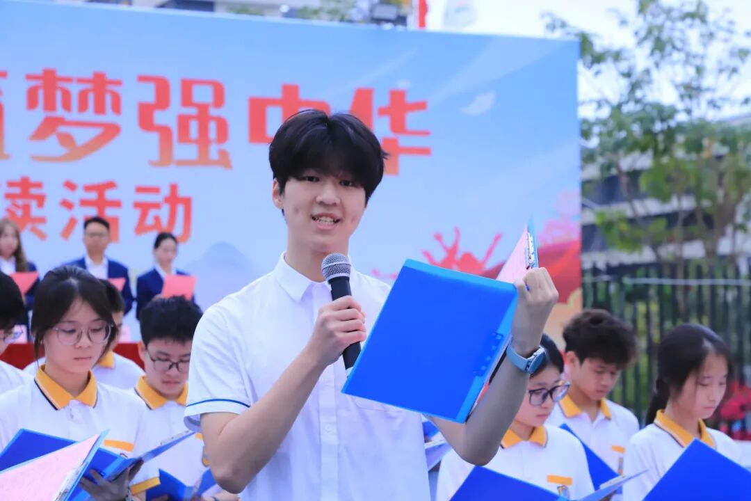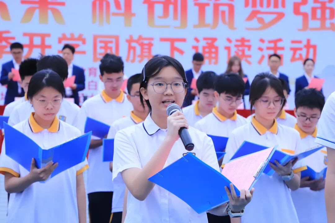 活动的核心环节,主题诵读震撼登场。领读同学们意气风发,全体师生齐声诵读,声音洪亮、气势磅礴,将少年的朝气、创新的渴望与家国的担当融入每一句诵读中。